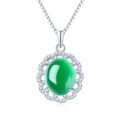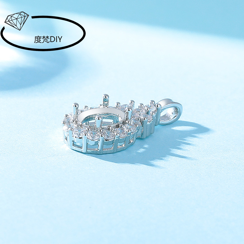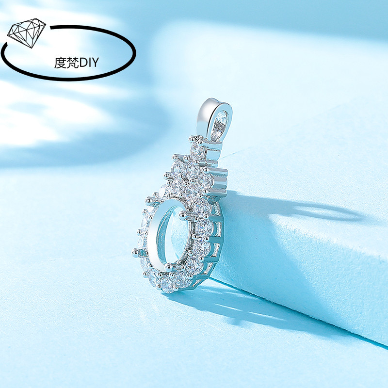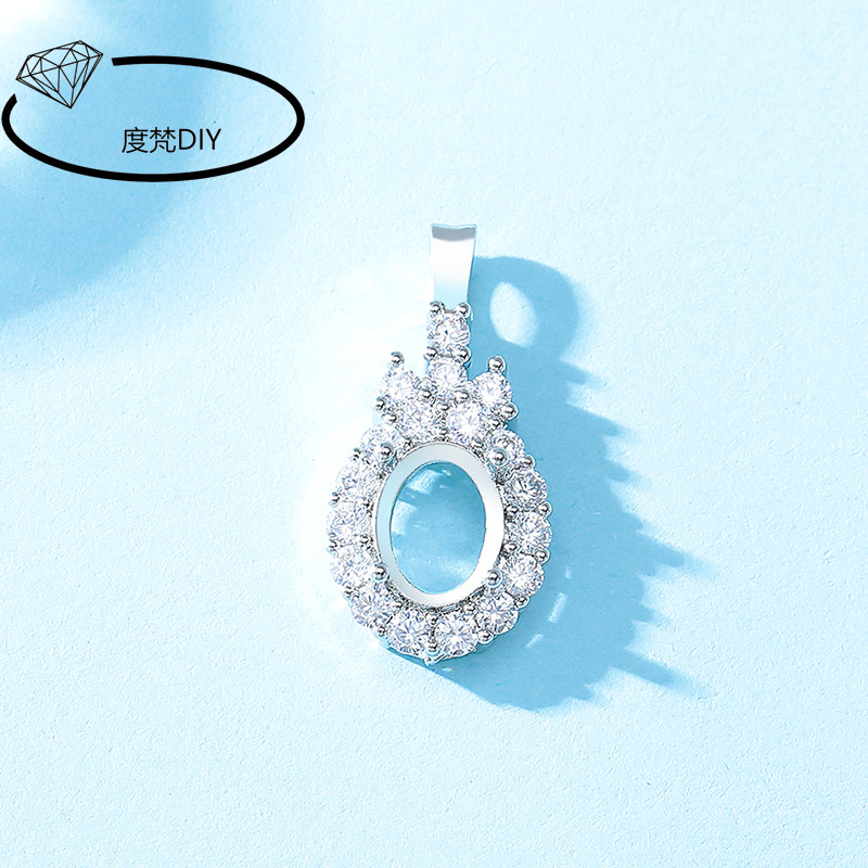 时尚经典满钻吊坠空托铜项坠托DIY镶嵌椭圆形翡翠华子钻仿925银托