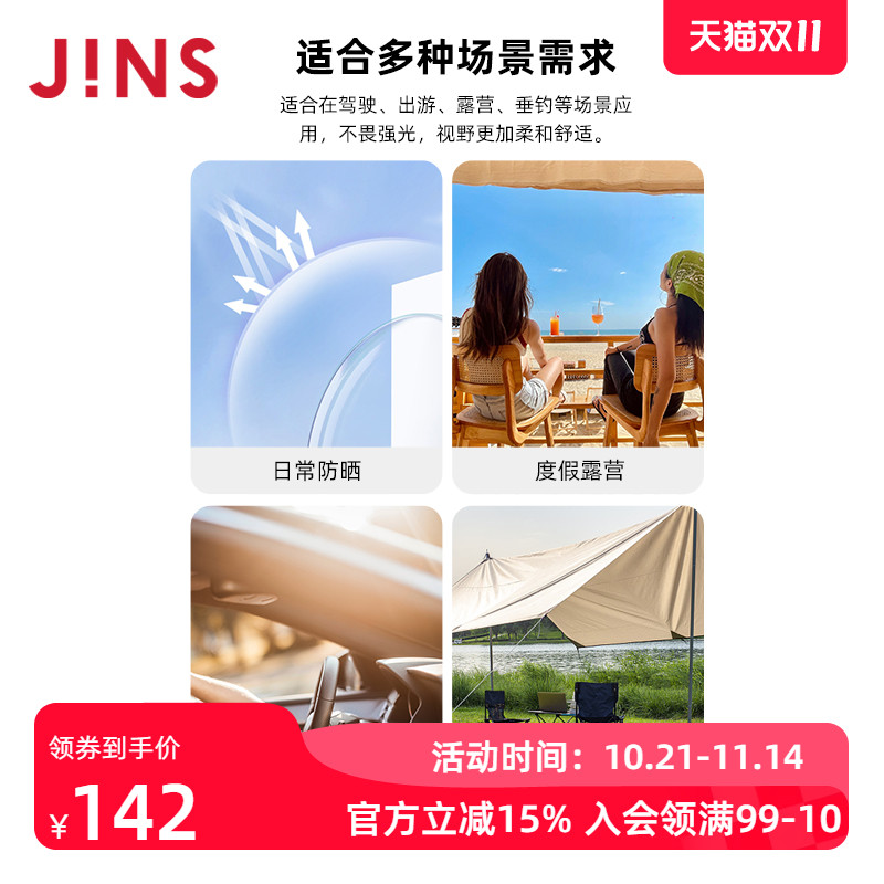 JINS睛姿大框圆框太阳镜套镜防紫外线墨镜可套近视镜外LRF23A175