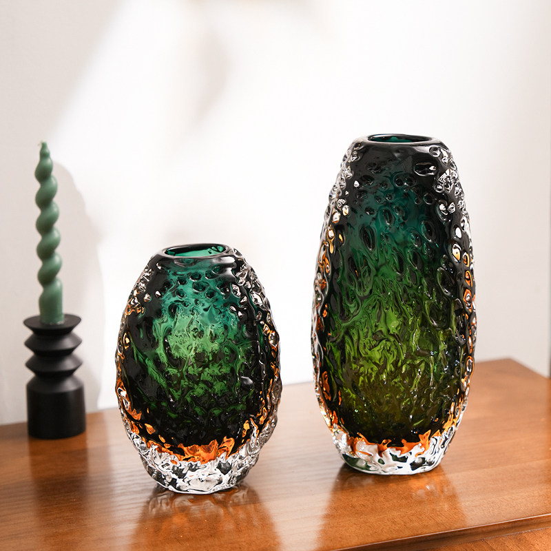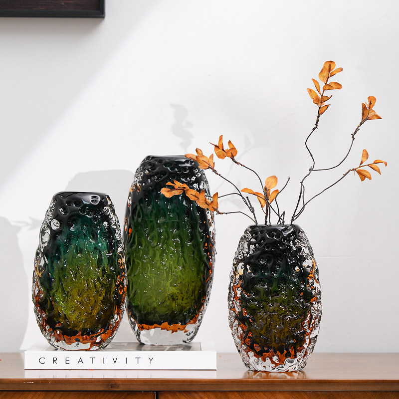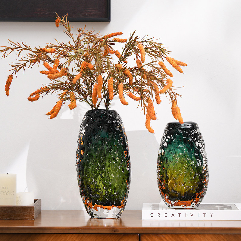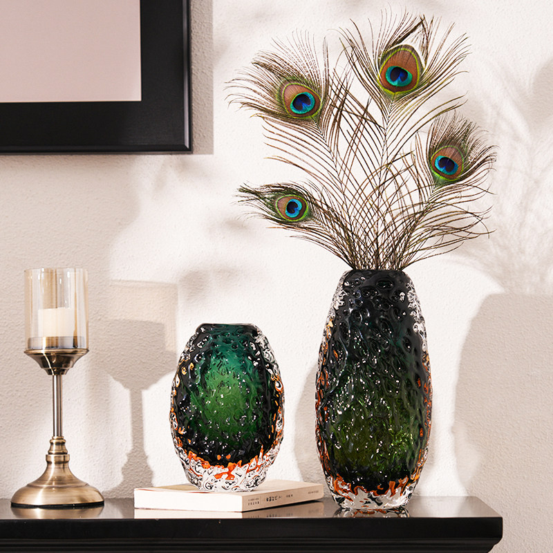 现代轻奢绿色玻璃花瓶摆件玄关客厅水培插花高级感艺术花器装饰品