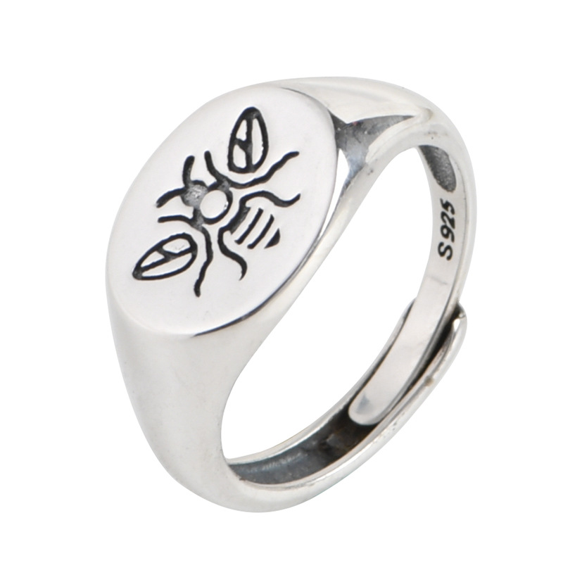 古银铺S925纯银复古做旧工艺银戒指男款开口设计师款密封食指中指