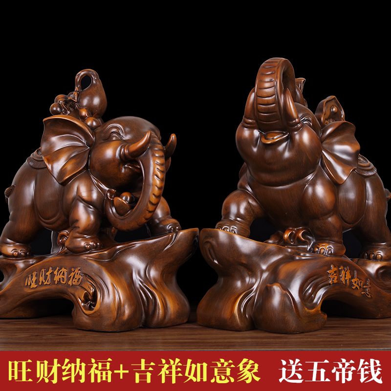 招财大象摆件一对吉象客厅电视柜酒柜装饰办公室业乔迁新居礼品