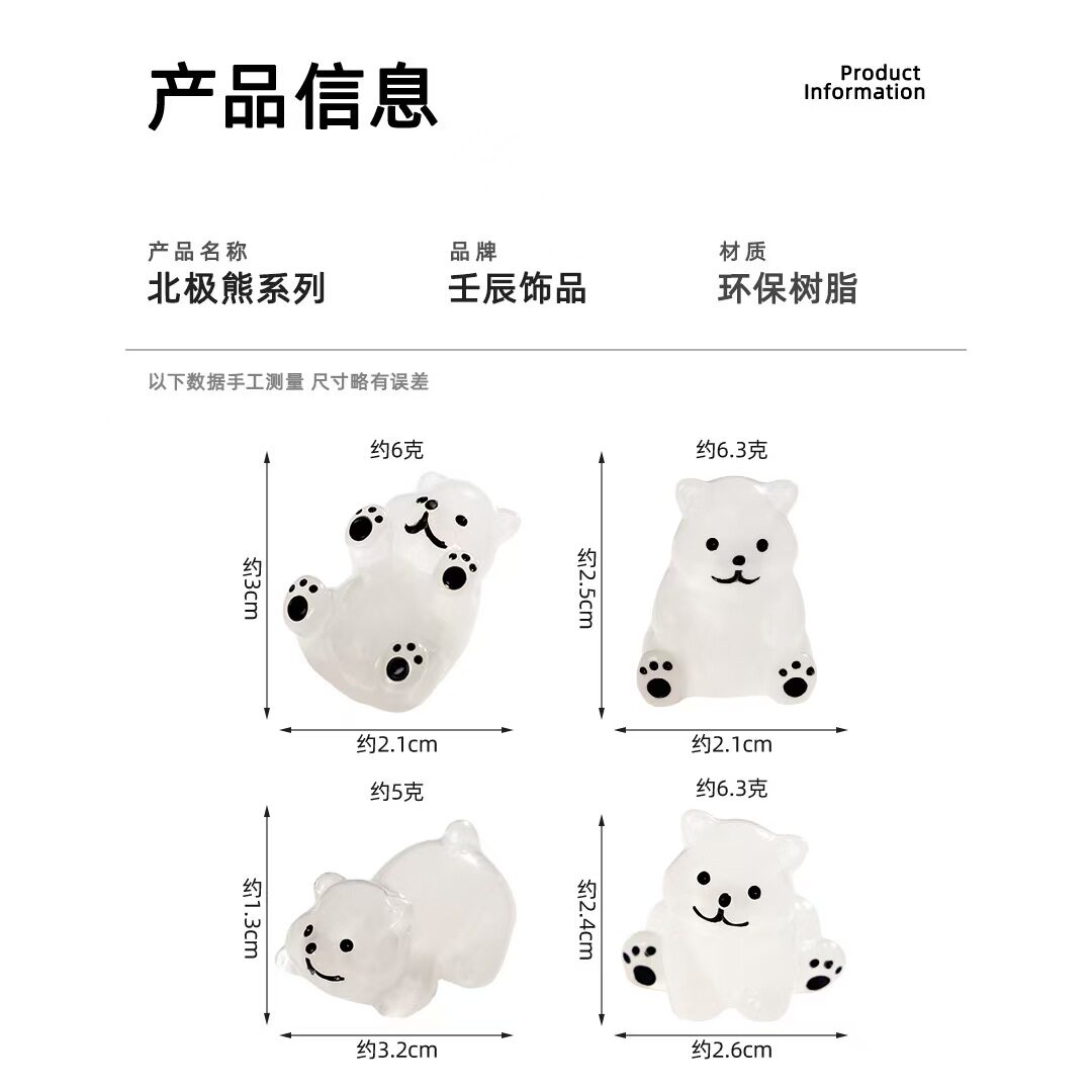 新款卡通公仔微景观场景装饰品diy饰品树脂小配件夜光北极熊挂件