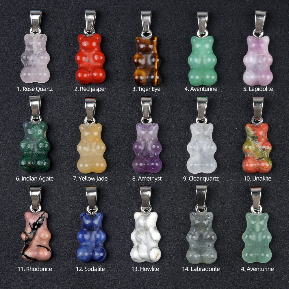 紫水晶卡通迷你小熊吊坠虎眼粉晶天然石头雕刻小熊动物项链