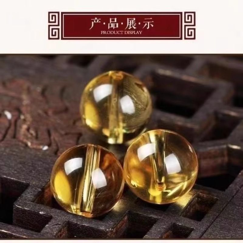 VZZS黄水晶手链散珠diy招财橙黄男女深色收藏黄晶圆珠单珠送礼