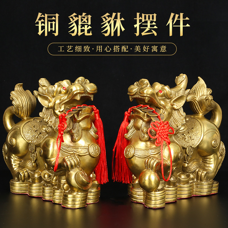 纯铜貔貅摆件一对貔貅招财聚财家居客厅办公室车内皮丘摆件大小号