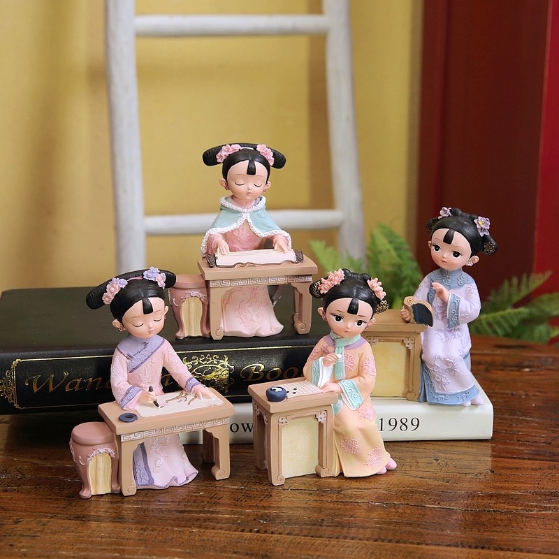 宫廷汉服风 树脂女孩人物摆件可爱生日礼物古风娃娃手办玄关装饰