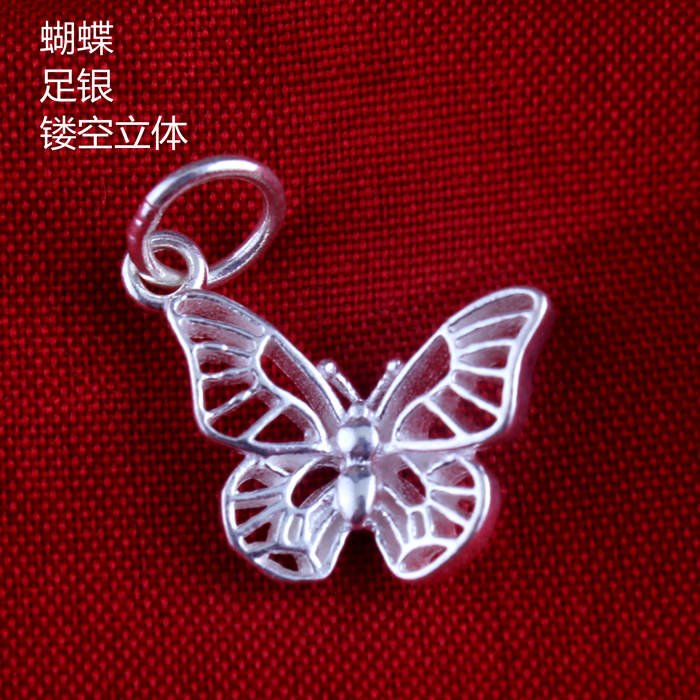 S999纯银项链各类吊坠女心形足银坠子单坠简约蝴蝶不含链单颗挂件