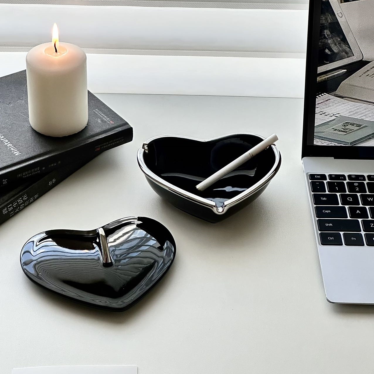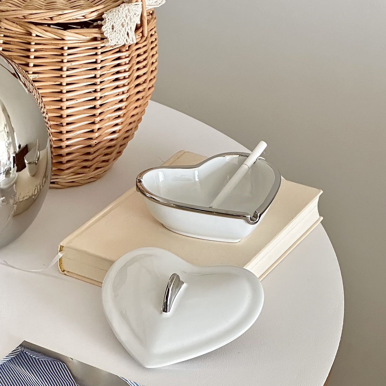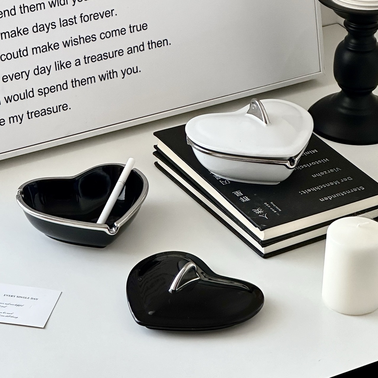 带盖陶瓷烟灰缸高级感 防飞灰家用客厅桌面创意小众烟缸轻奢银ins