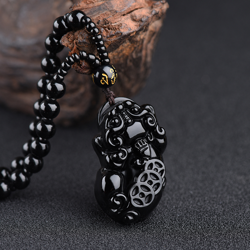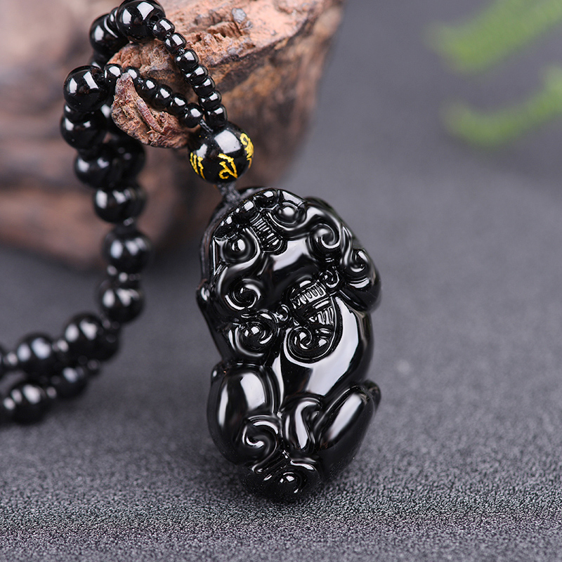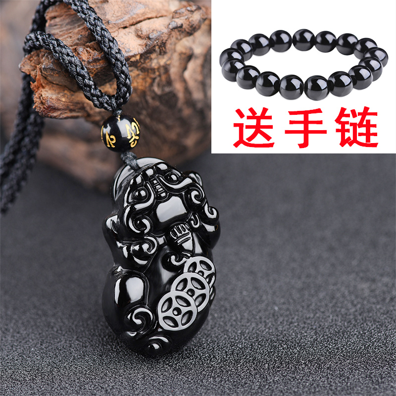 黑曜石貔貅吊坠男士女天然水晶项坠貔貅情侣挂坠项链挂坠简约饰品
