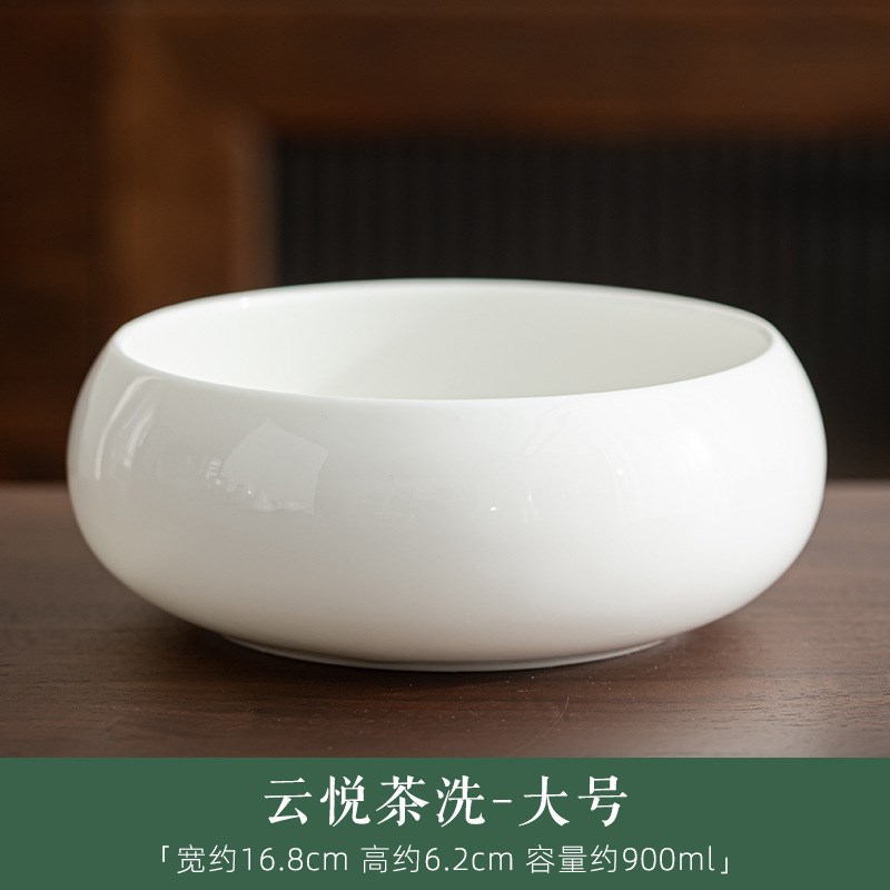 德化羊脂玉白瓷茶洗茶杯洗水洗碗陶瓷茶道配件茶室新中式装饰摆件