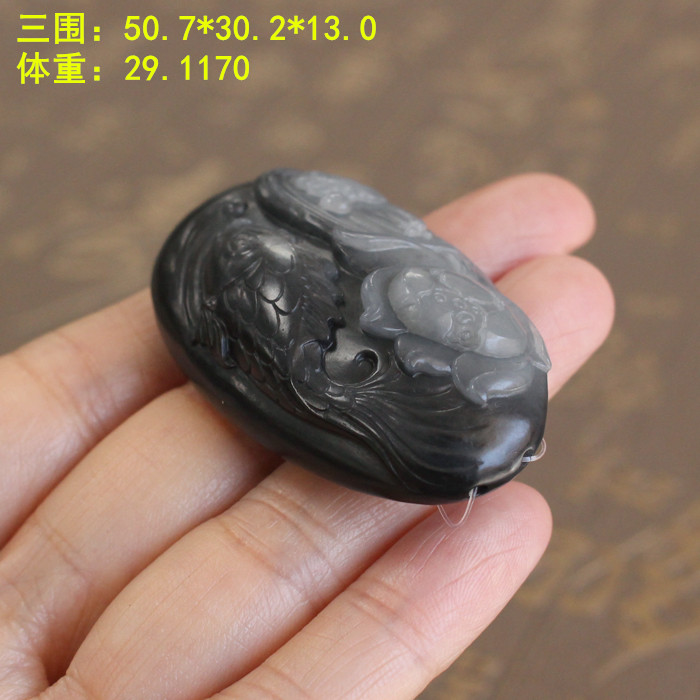 N密度ji大黑白分明墨玉籽料“连年有余”挂件 有原皮 朕®开仓