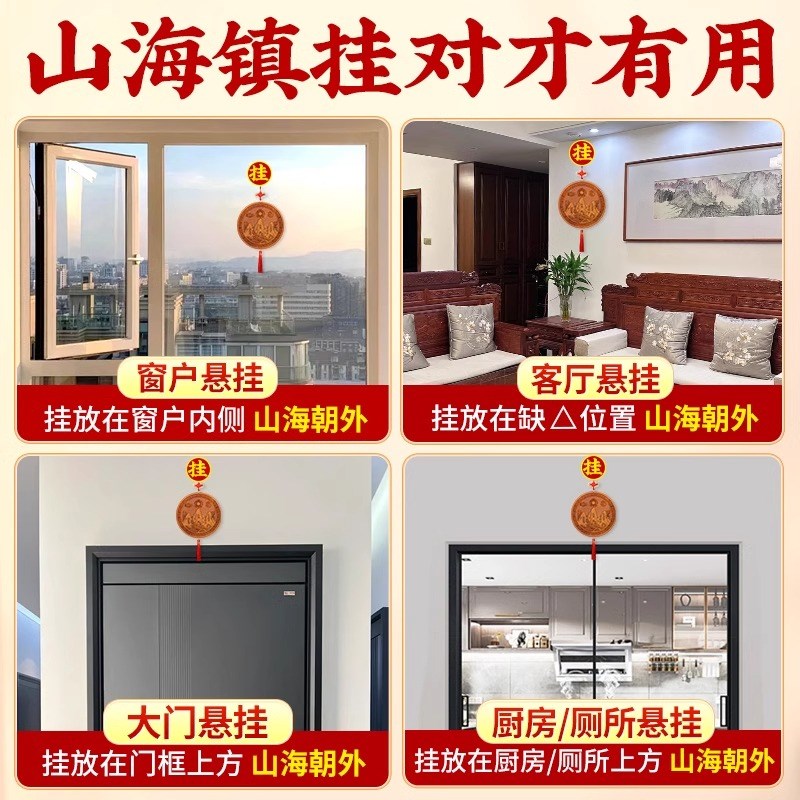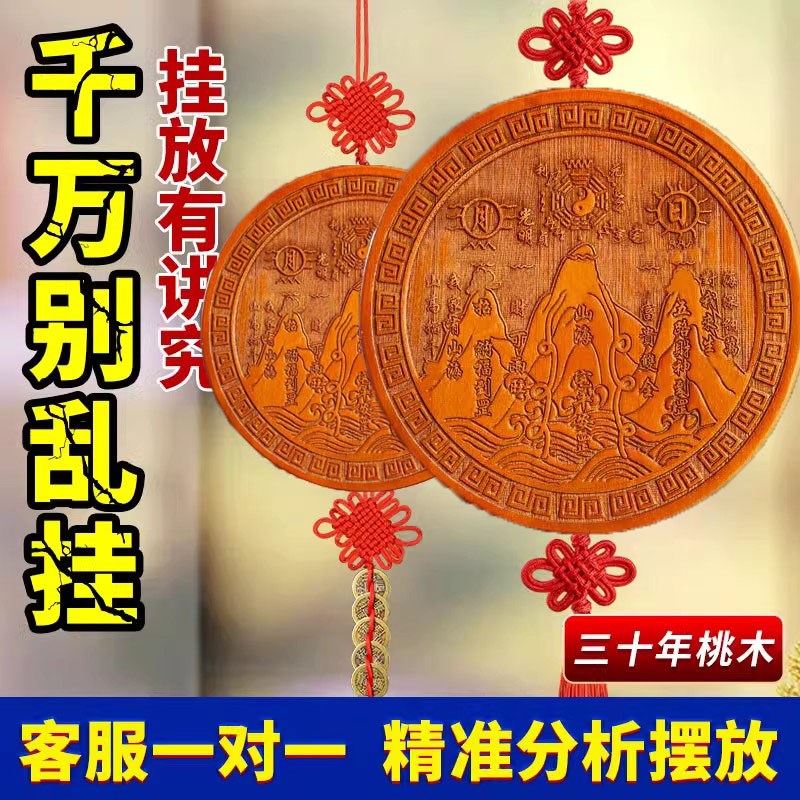 桃木山海镇牌开八卦的挂件山海辟图化解室外镇宅大门对光邪电线杆
