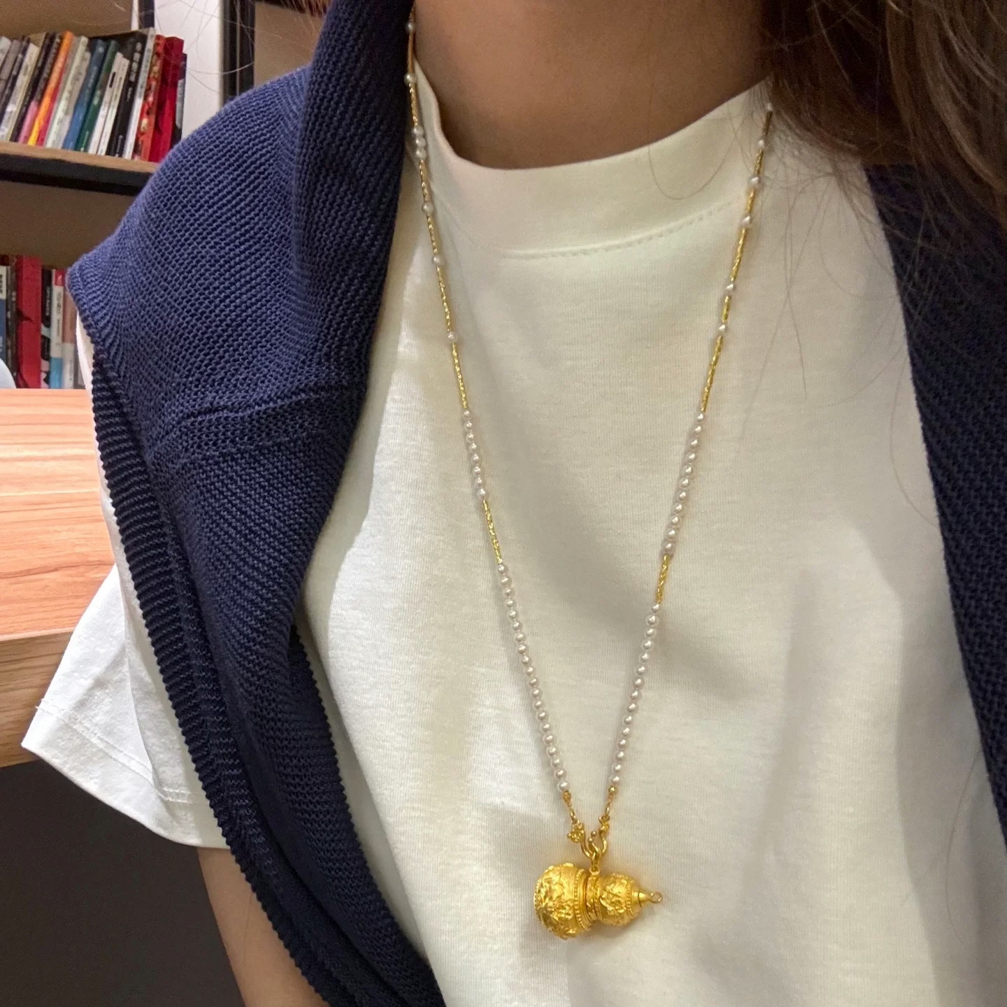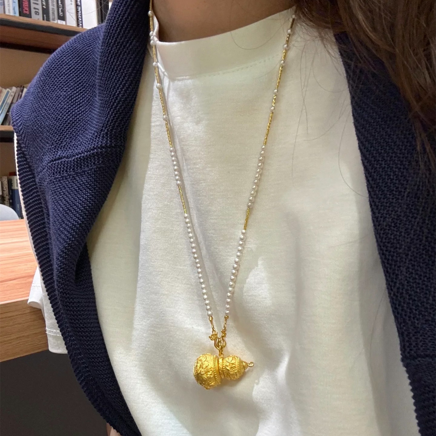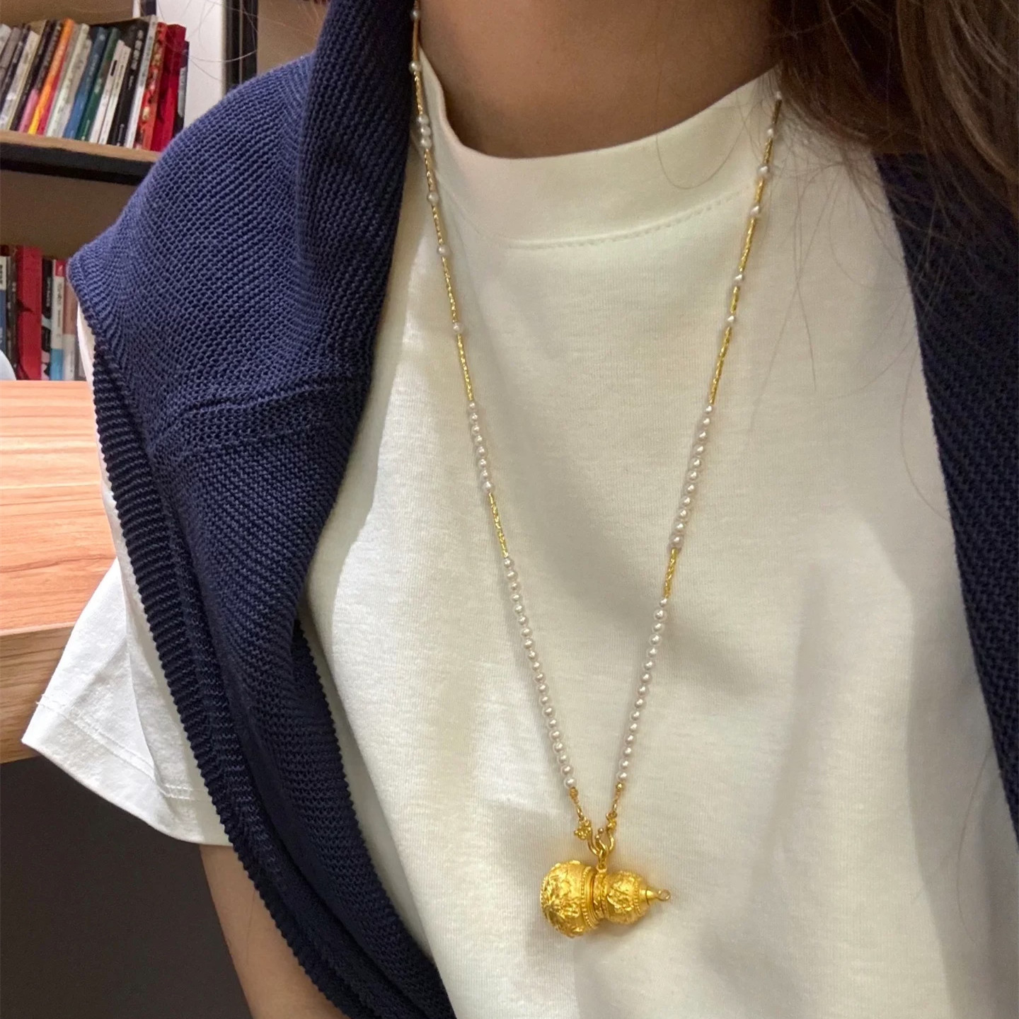 金店同款沙金仿真金珠珠篆刻葫芦吊坠女新款轻奢高级感项链送女友