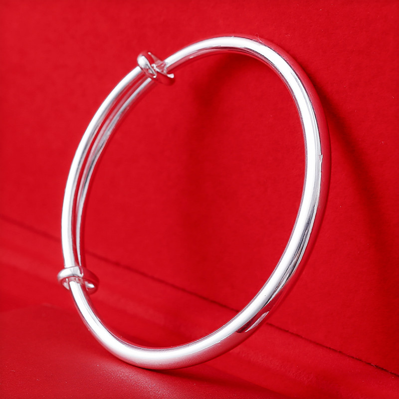 福凤茗纯银手镯女9999年轻款银饰光面实心镯子素圈送女友生日礼物