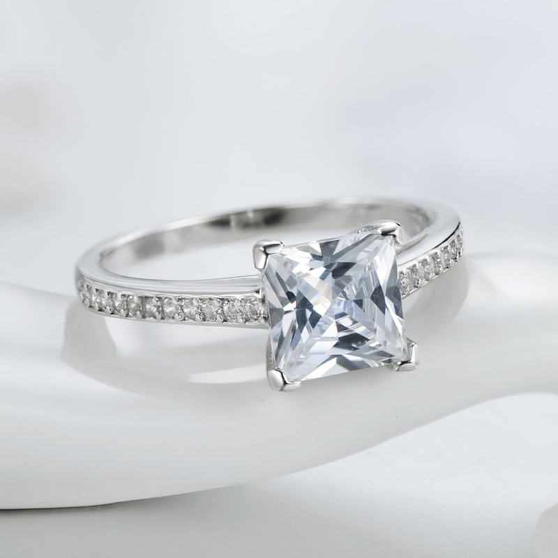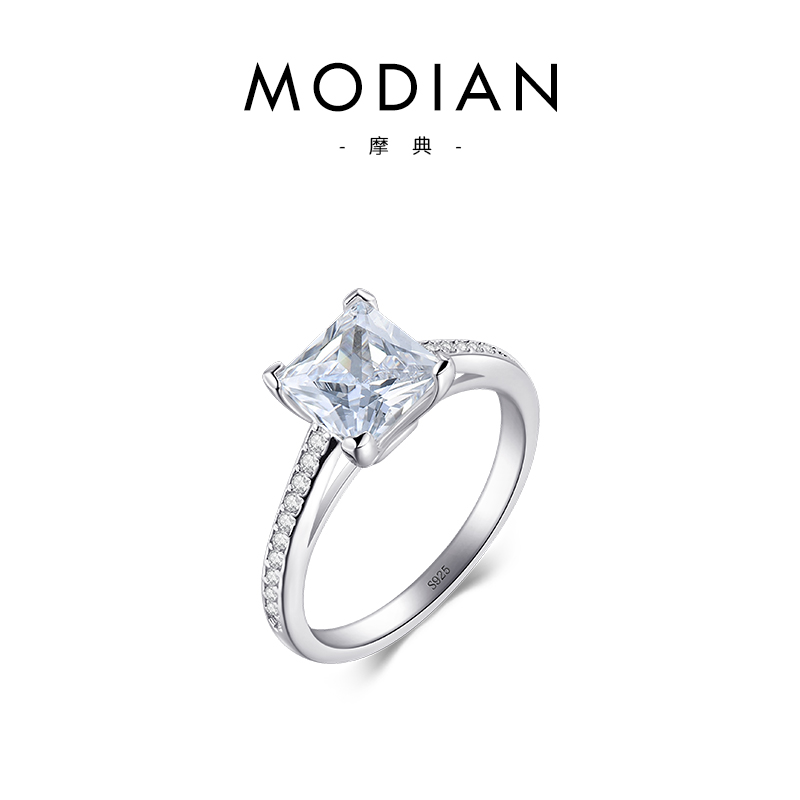 正品原创设计s925纯银正方戒指简约欧美百搭时尚食指镶钻INS饰品