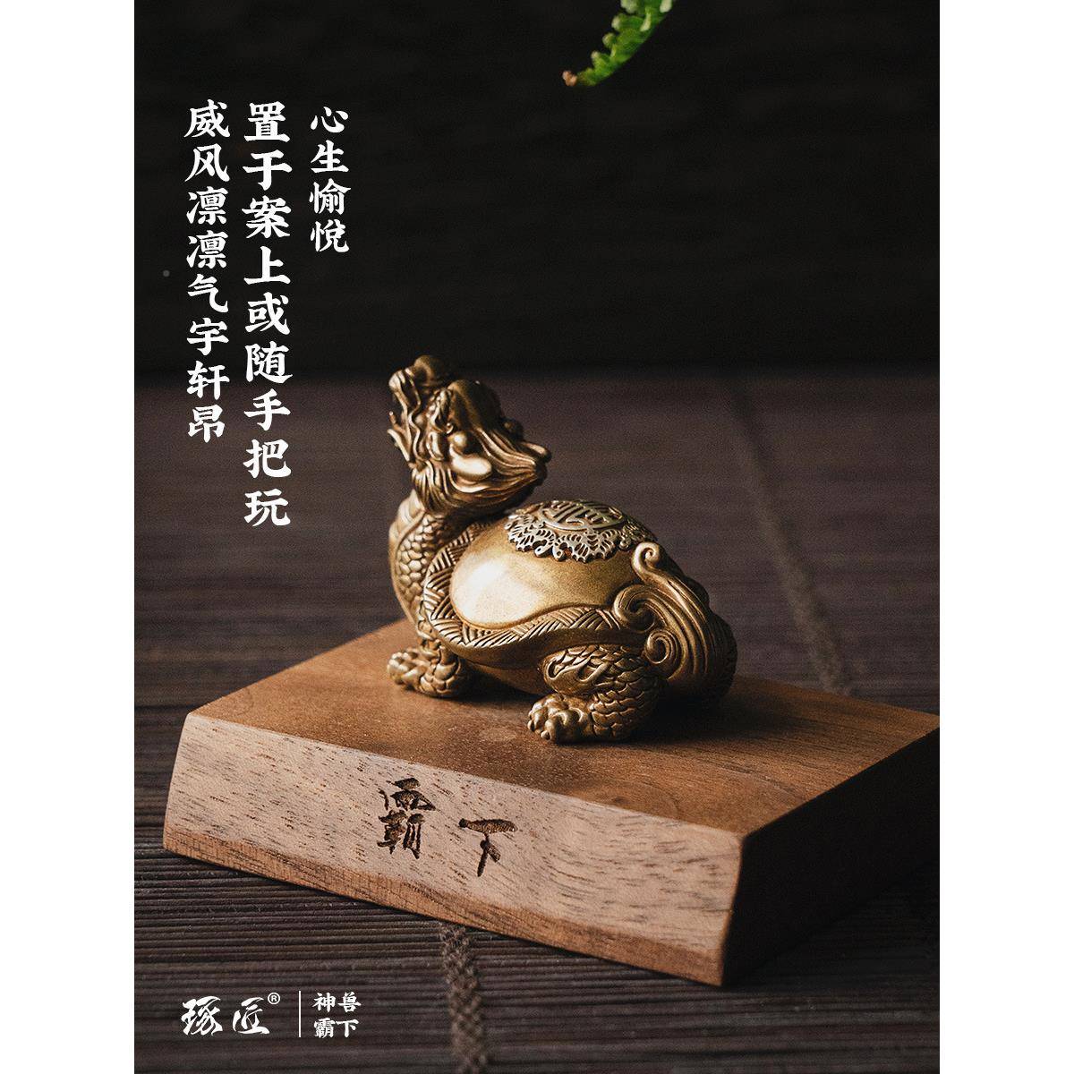 I9龟E青K面『神兽霸下』铜茶宠桌文F76J6H65玩玄武龙全铜摆件小号