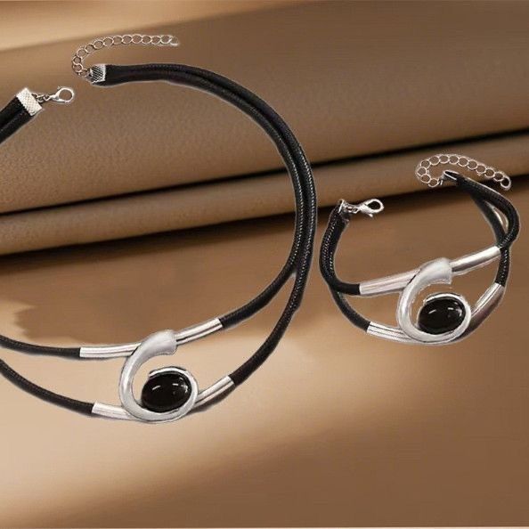 女士手链项链组合超仙波西米亚风格金色与黑色亚克力宝石珠宝套装
