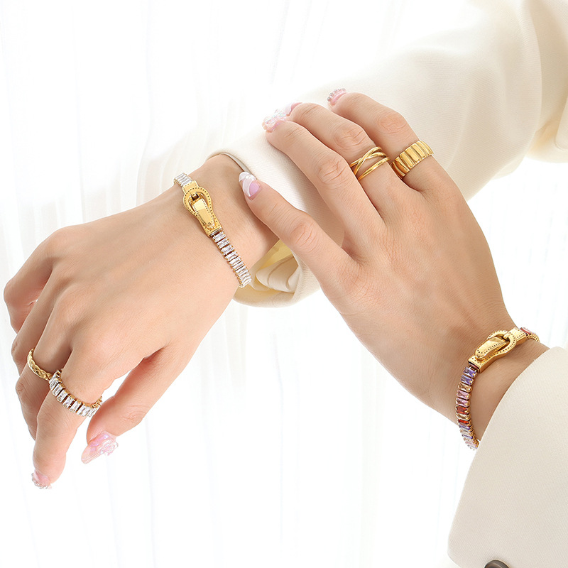 新法式不掉色ins七种彩锆吸铁扣自动吸合手链跨境钛钢批发女饰品