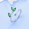 时尚个性绿色钻石树叶竹节纯银戒指女简约森系叶子指环开口手饰品