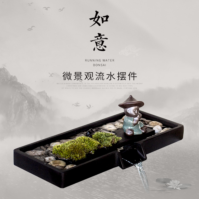 石槽小鱼缸池微景观假山喷水瀑布流水摆件循环器招财造景装饰配件