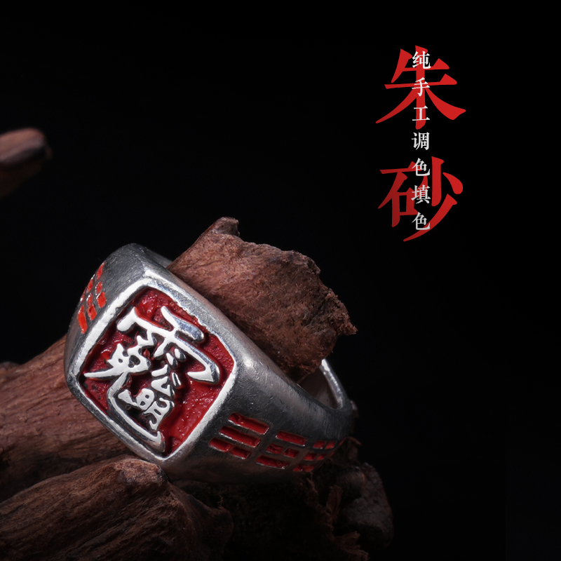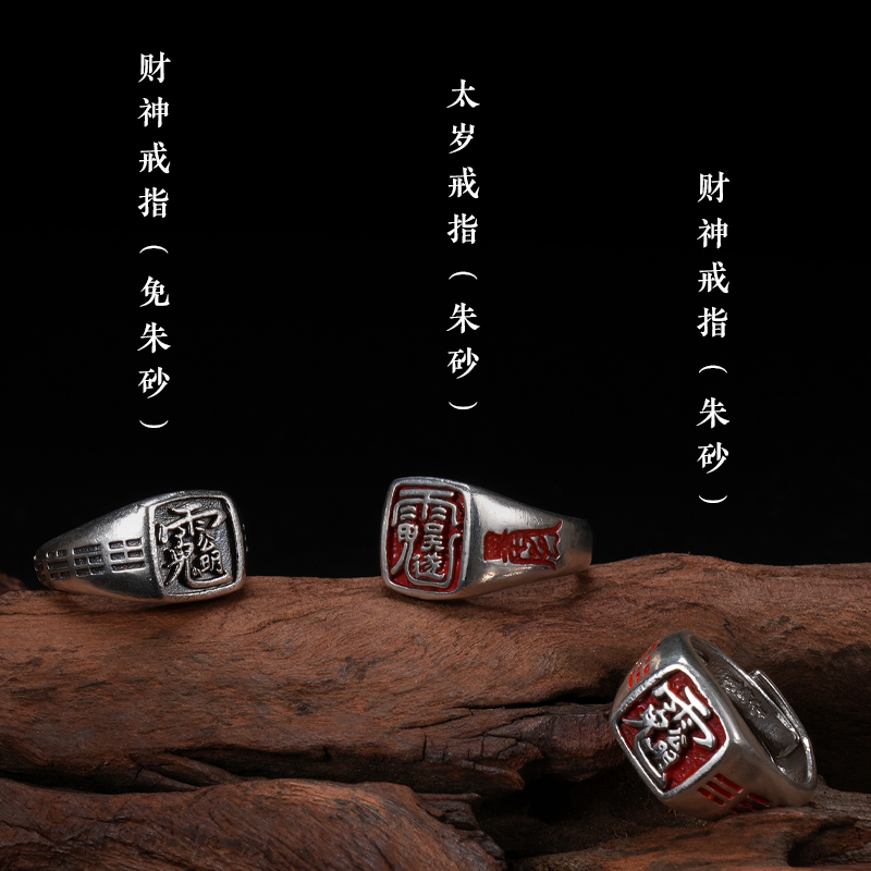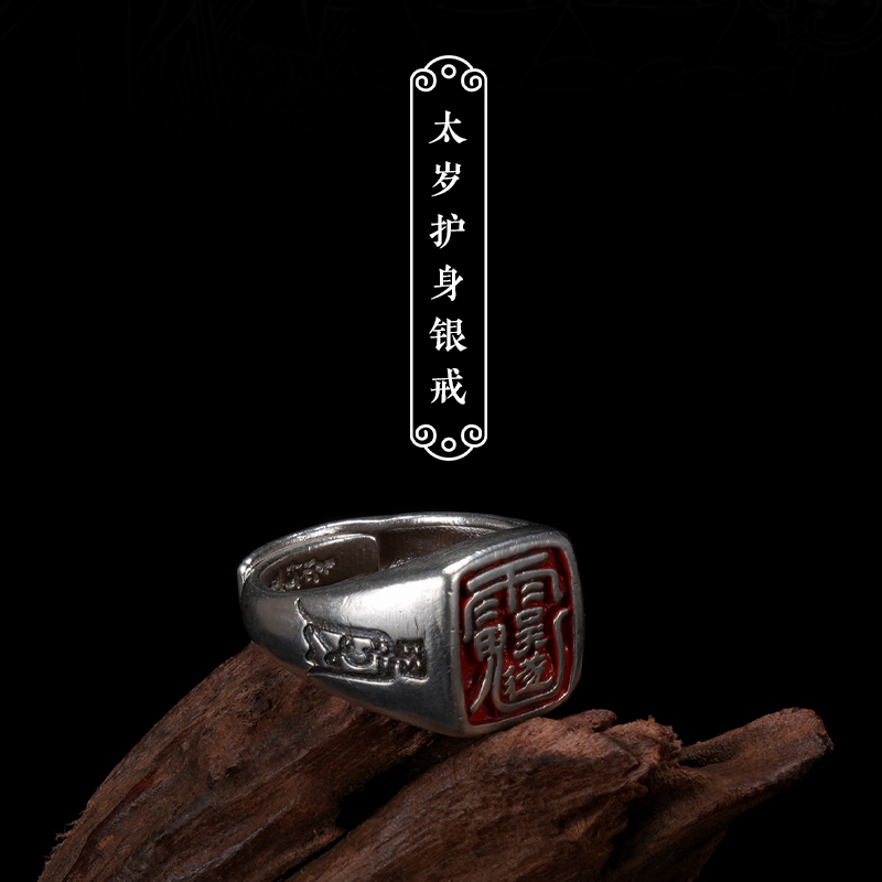 道轩堂 纯银财神戒指男女款999足银太岁戒指实心开口国风道系手工