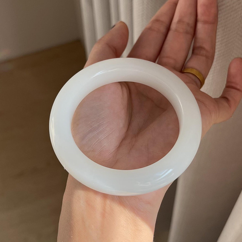 仟喜梵“安然”和田青白玉翡翠平替女款阿富汗真玉镯子正品