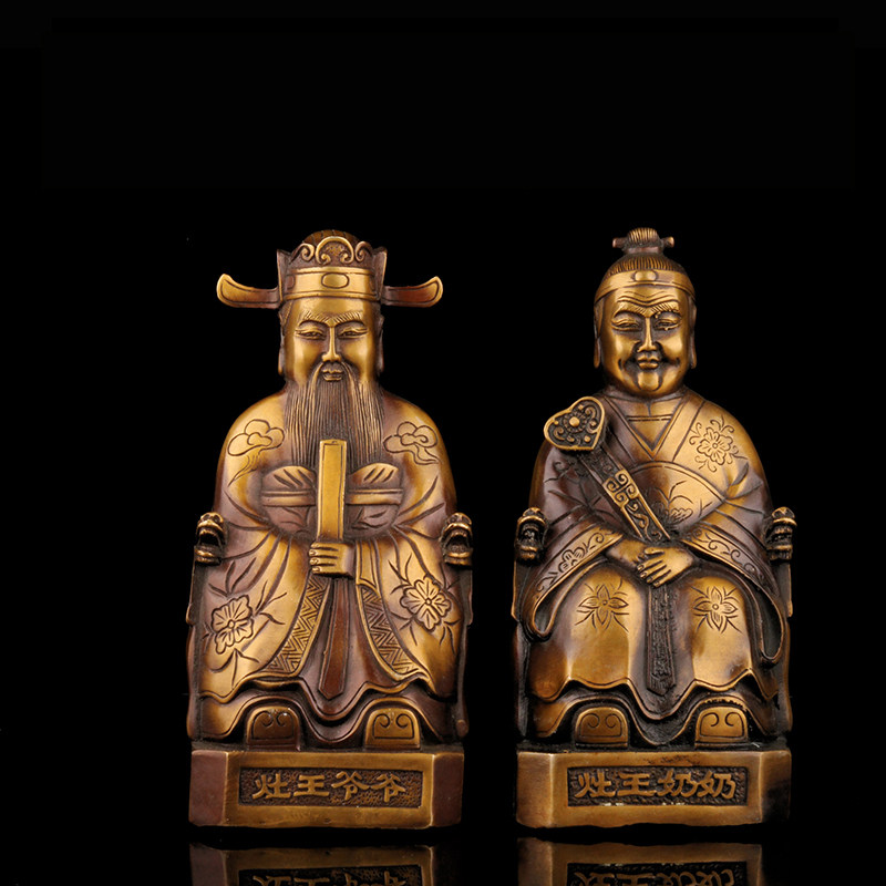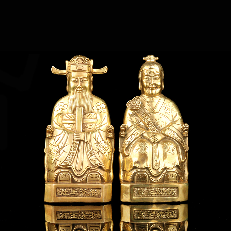 铜灶王爷灶王奶铜像一套铜灶公灶婆灶王君灶君像家居摆件工礼品