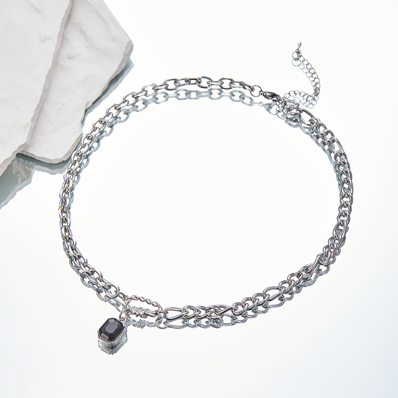 softdora/索缇朵复古链条项链女黑色方块吊坠小众高级感潮酷ins风