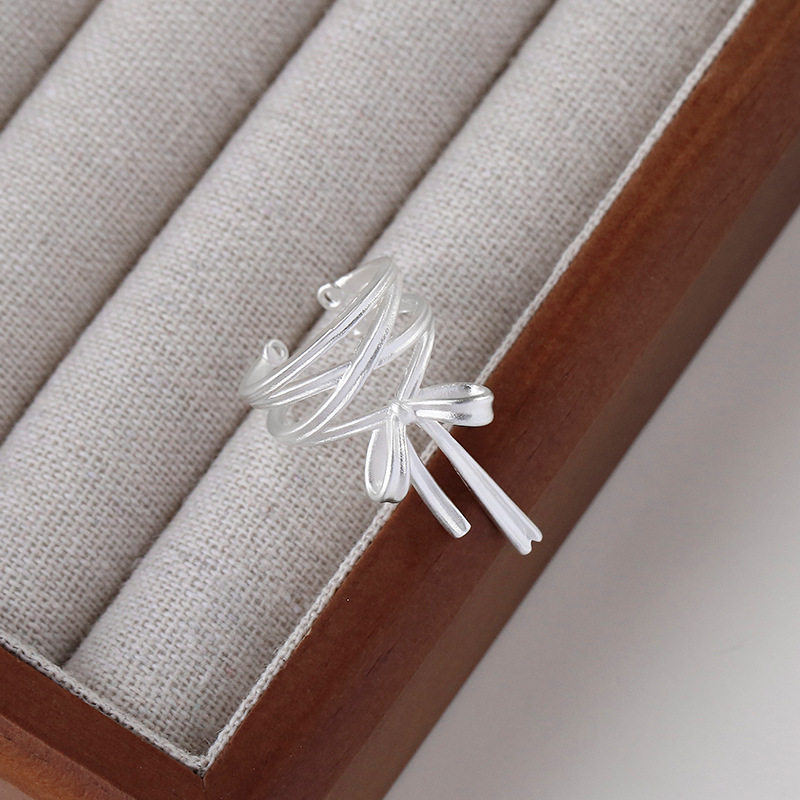 925纯银芭蕾风丝带蝴蝶结开口戒指女设计感可调节独特小众ins高级
