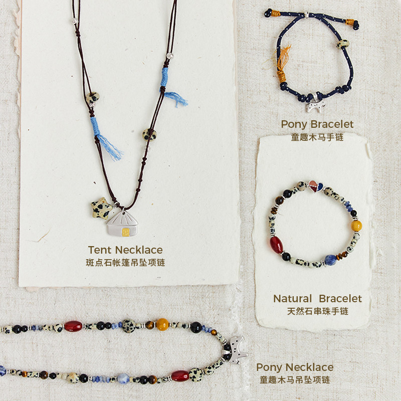 GOOGMO原创设计编织项链绳可调节斑点石配饰帐篷吊坠流苏锁骨链