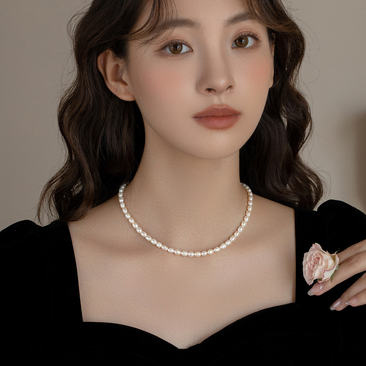 时尚天然淡水小米珠珍珠项链女2025新款爆款颈链气质高级感锁骨链