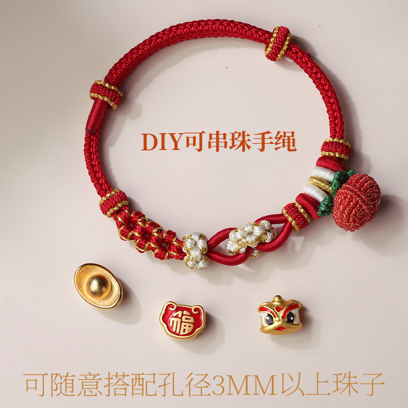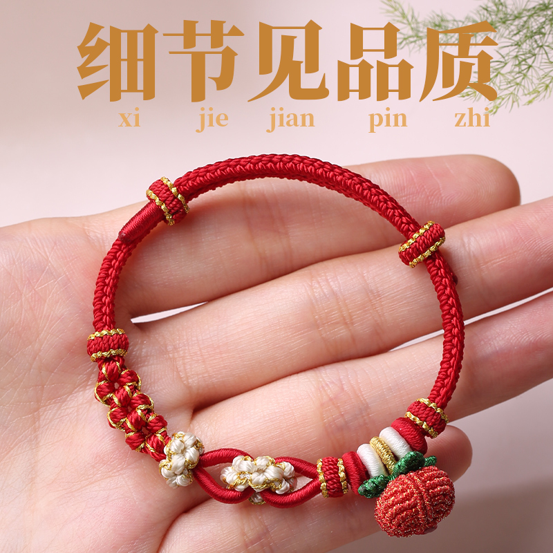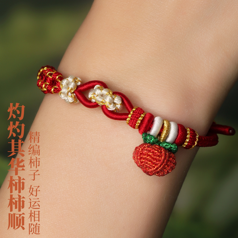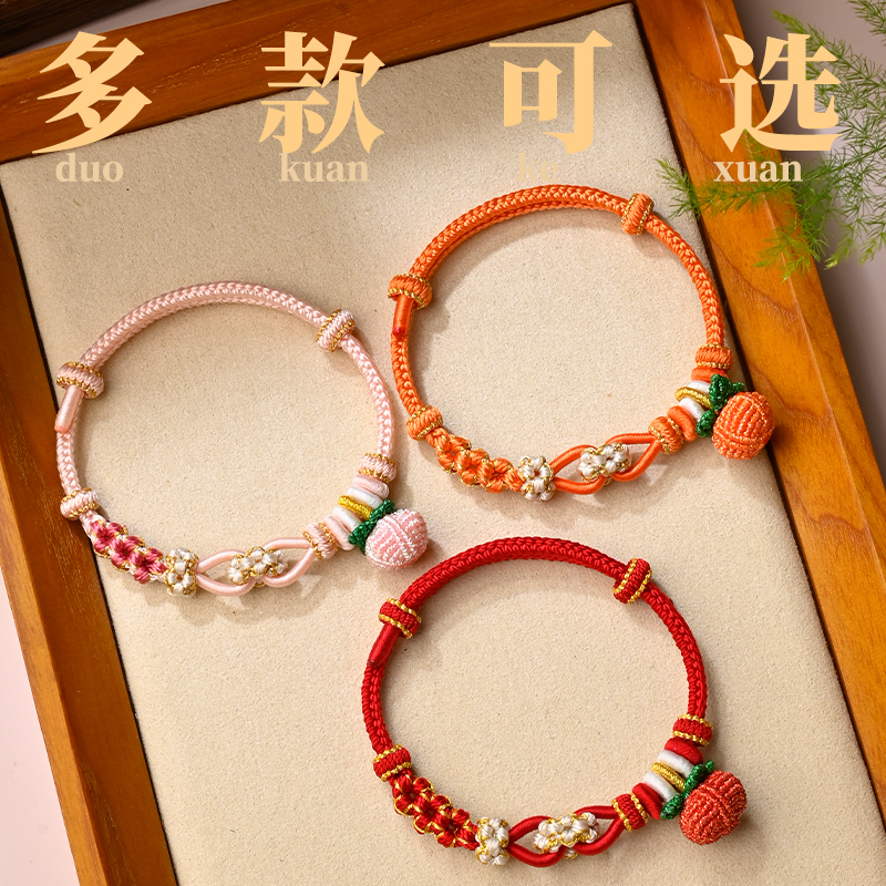 柿柿如意手绳手工编织桃花手链女款可穿珠闺蜜饰品生日礼物送女友