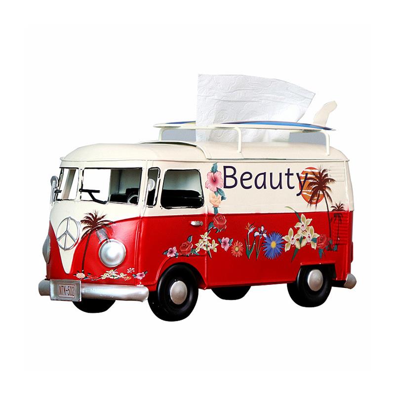 新品工业风家居创意铁艺复古巴士纸巾盒模型摆件美式集装箱抽纸盒