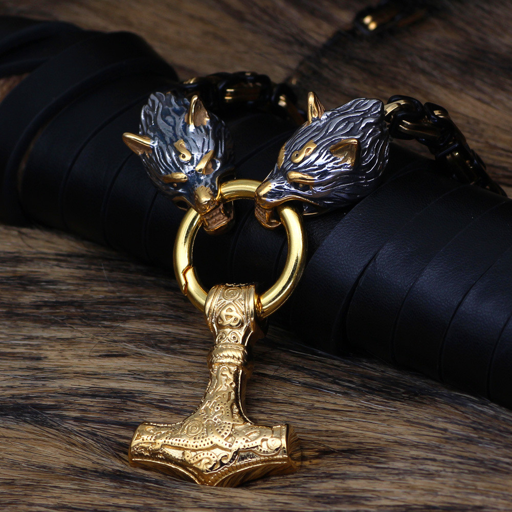 新款不锈钢帝王项链奥丁图腾锤子链方形链条北欧神话饰品