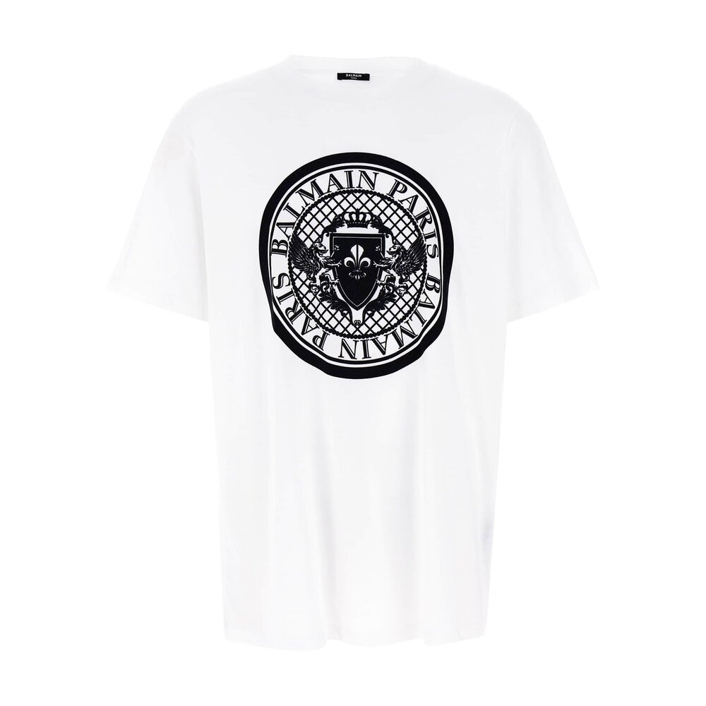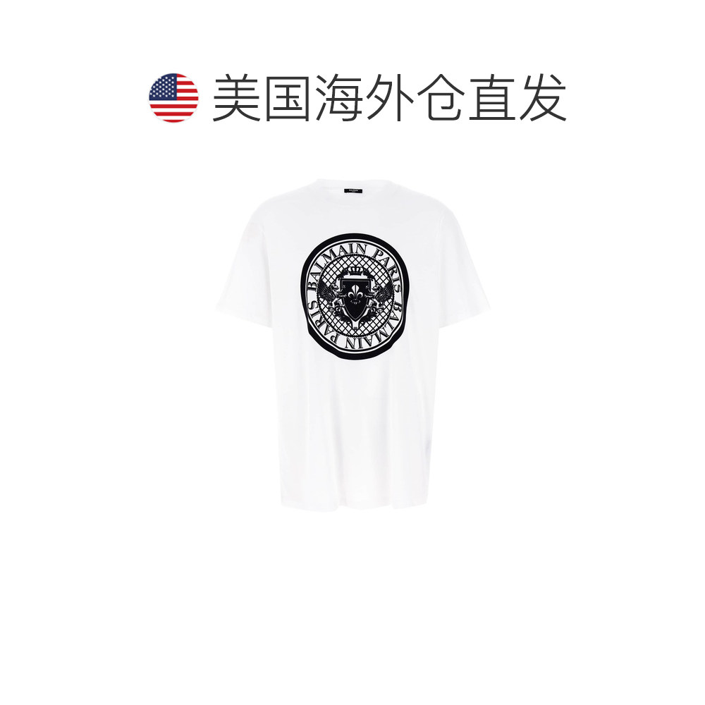 自营Balmain Men's Velvet Logo T-Shirt - white/black 美国奥莱