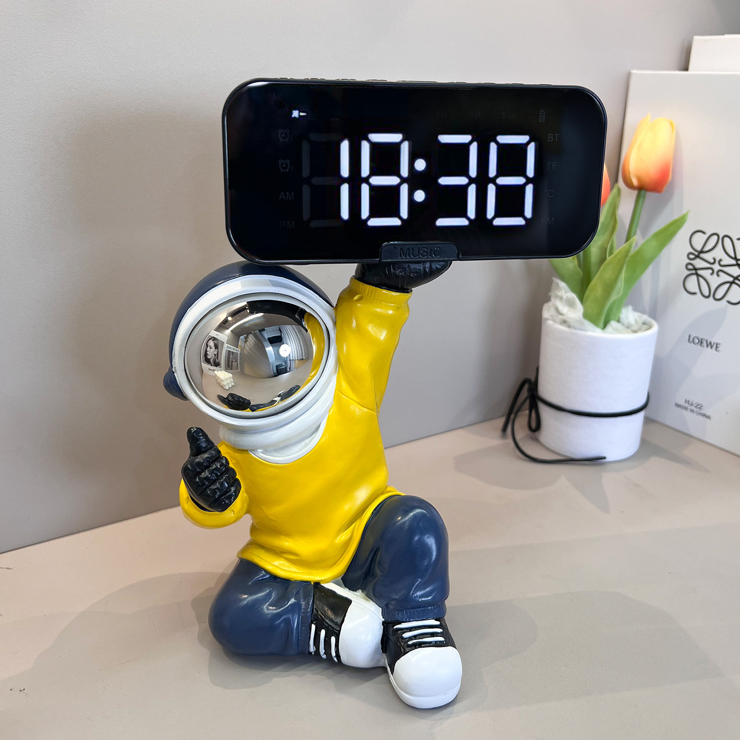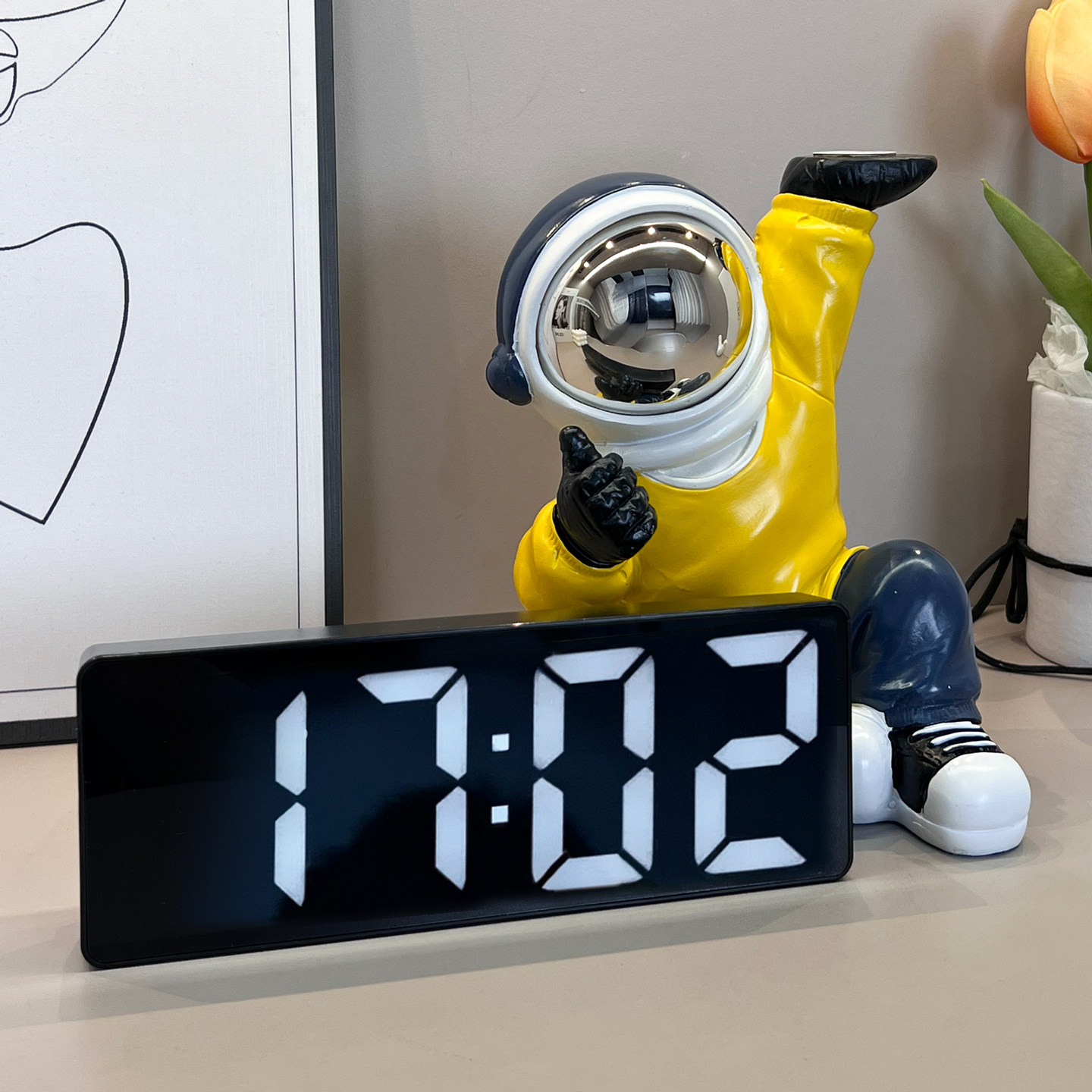 创意客厅宇航员摆件表钟智能小闹钟电子数字时钟摆台式太空人钟表
