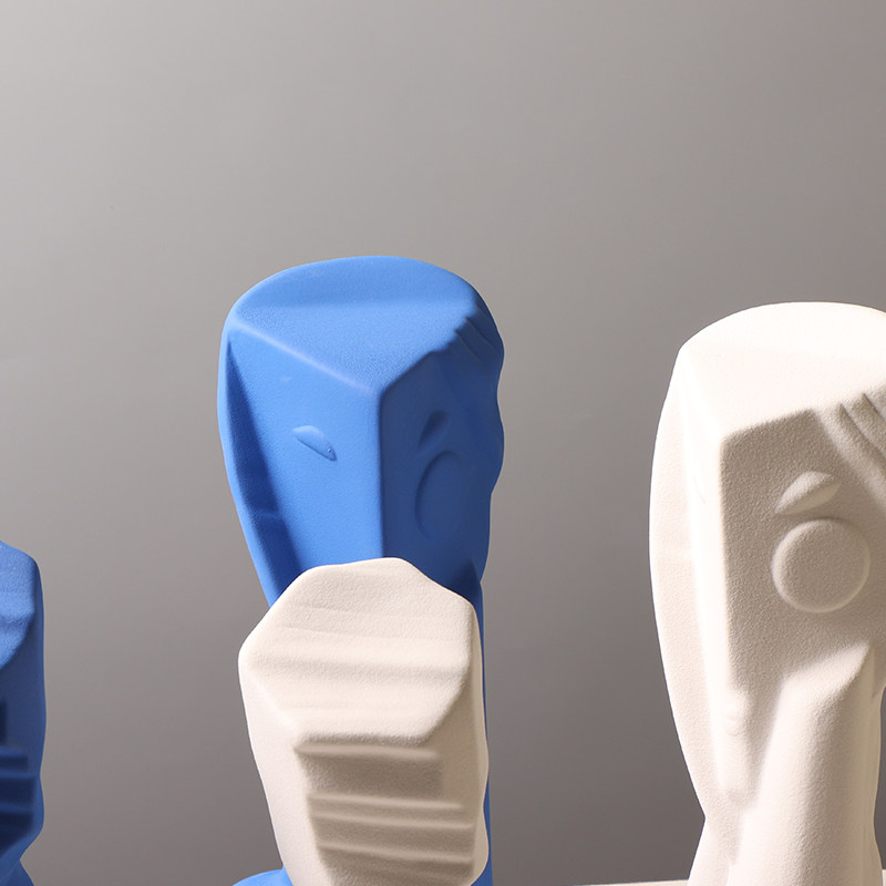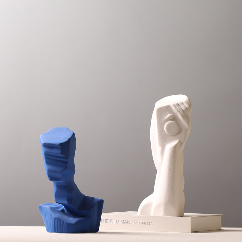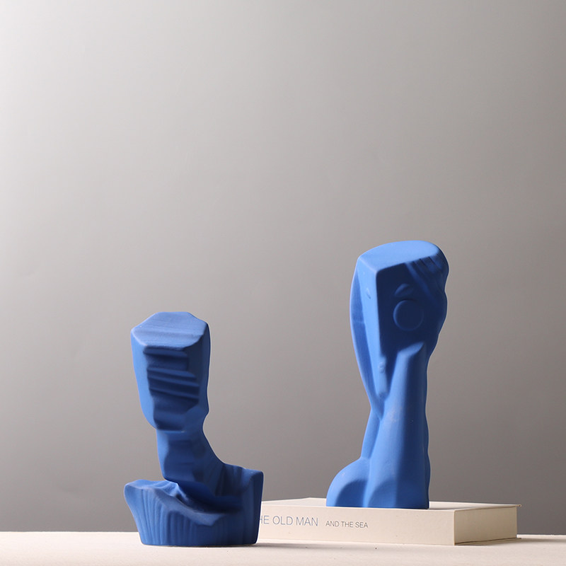 北欧创意磨砂人脸摆件陶瓷装饰品样板房客厅茶几摆设克莱因蓝白色