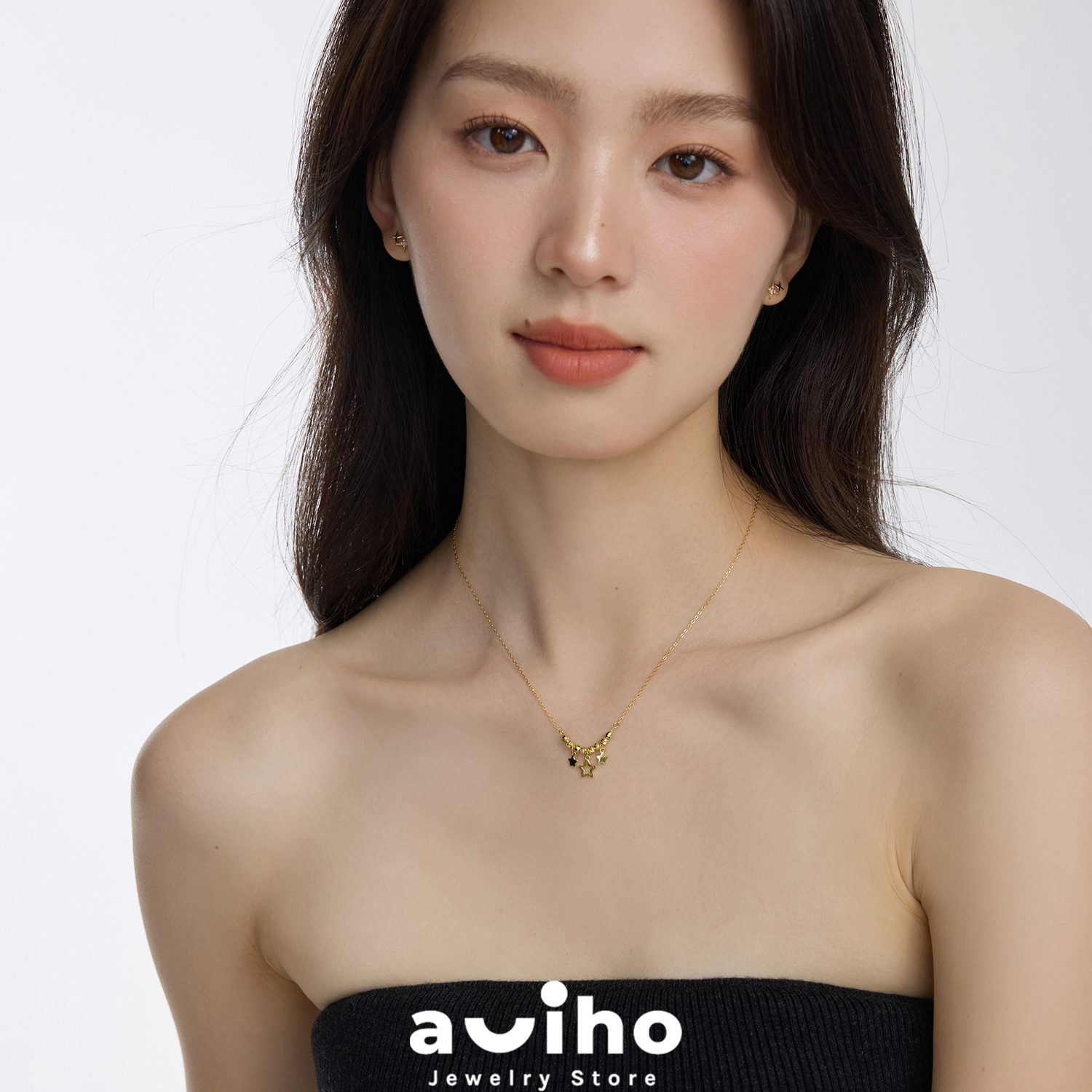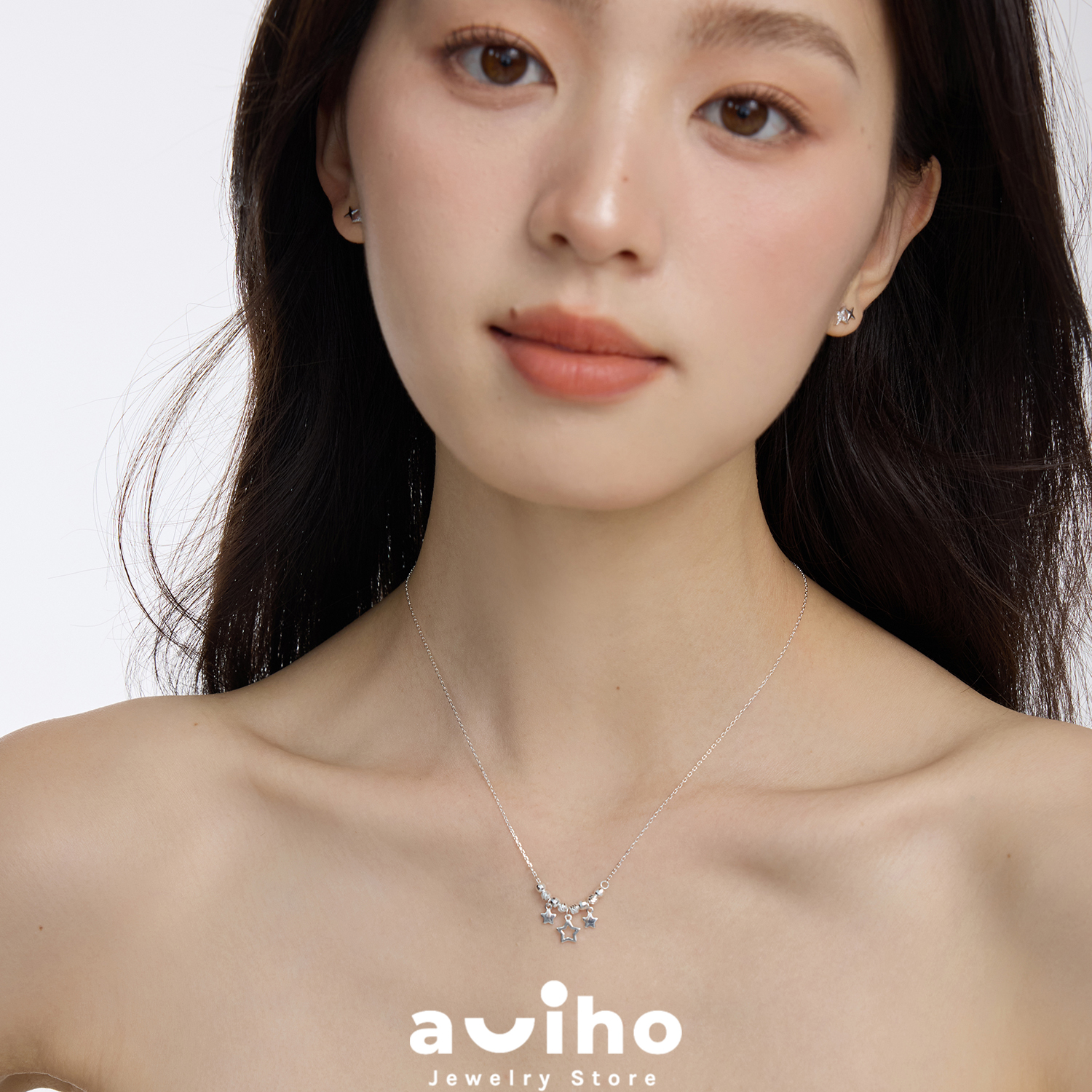 aviho 925纯银超仙气甜美少女星星流苏项链珠锁骨链女颈链