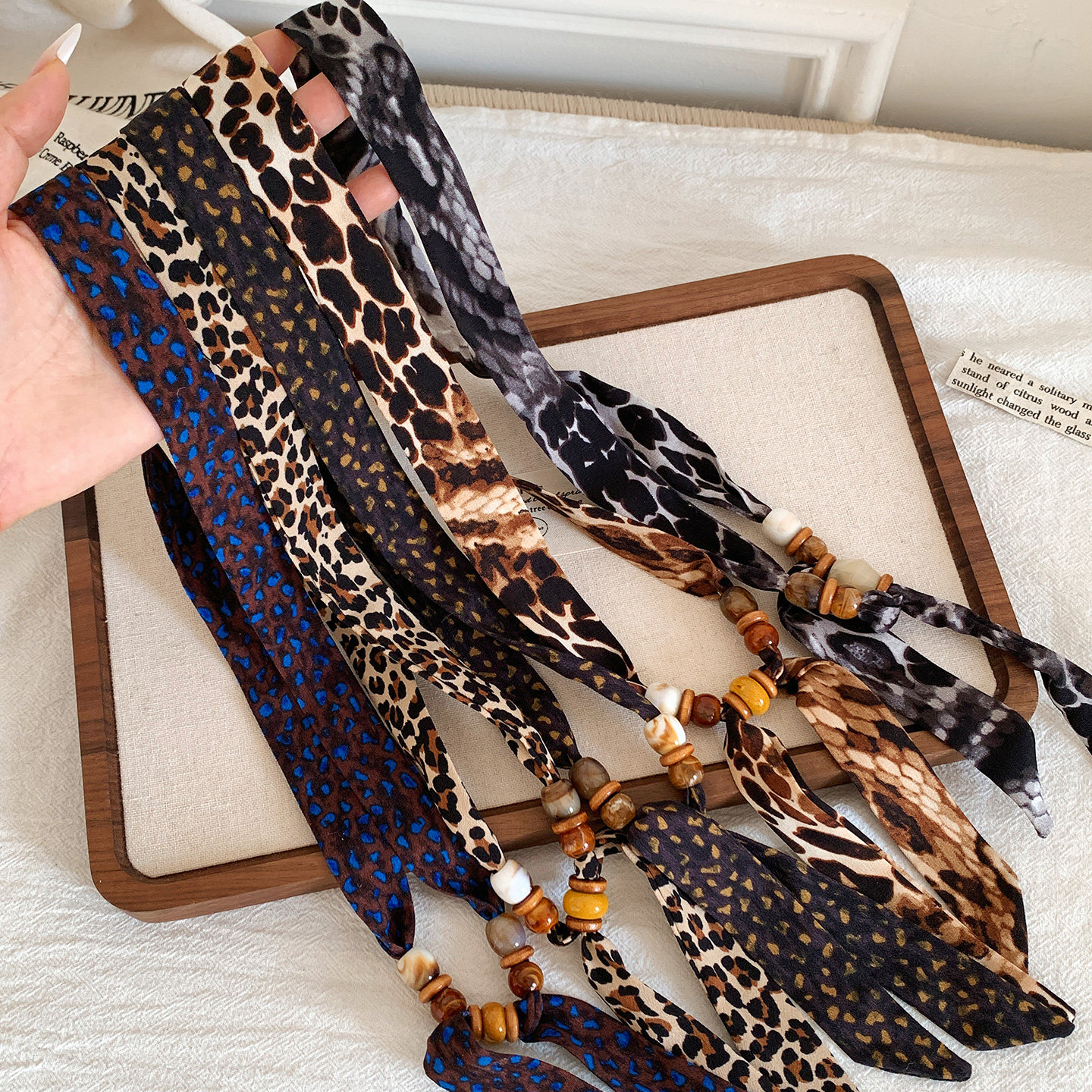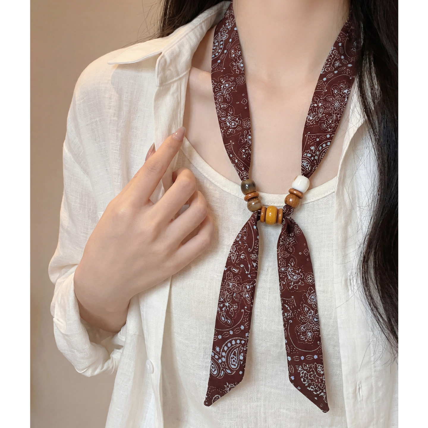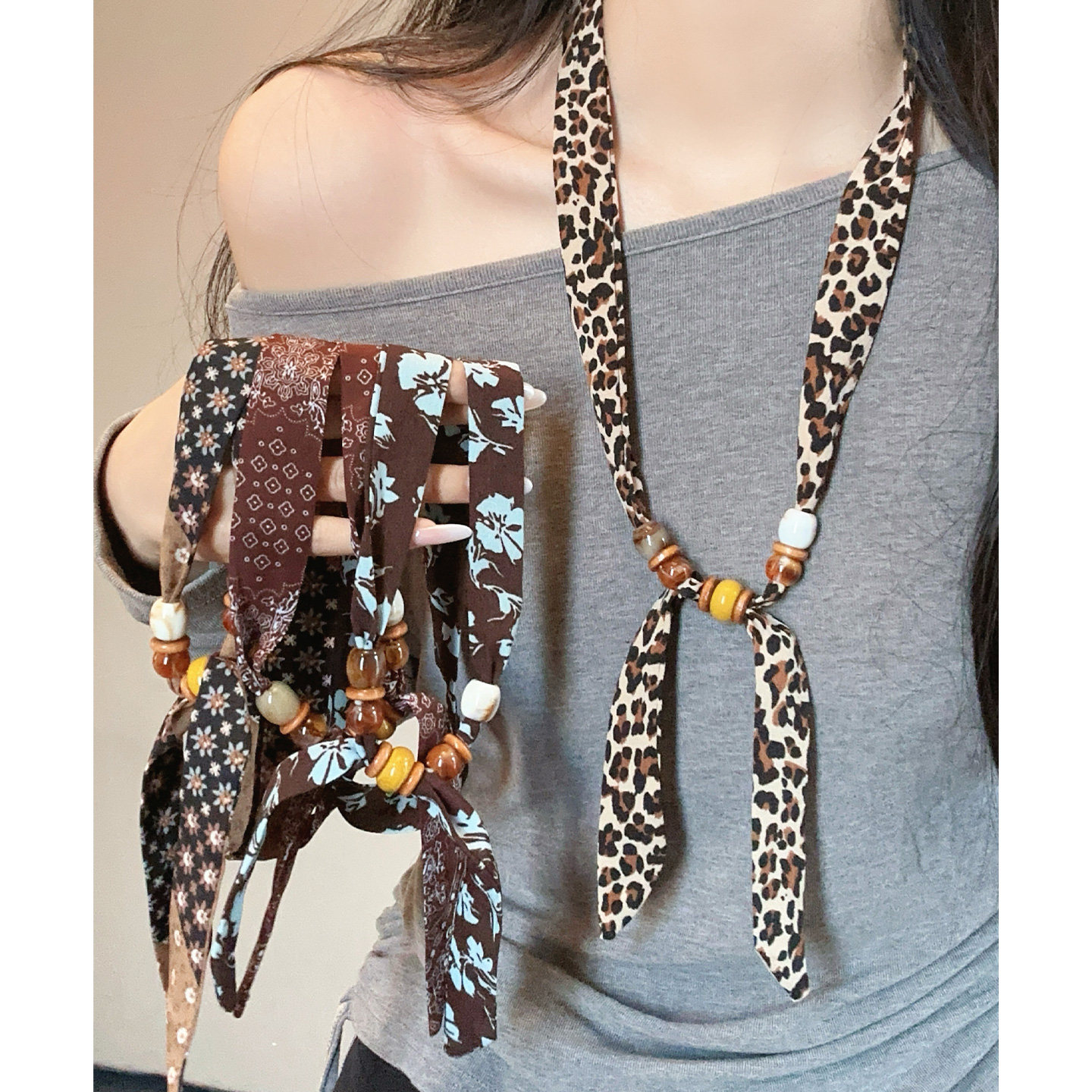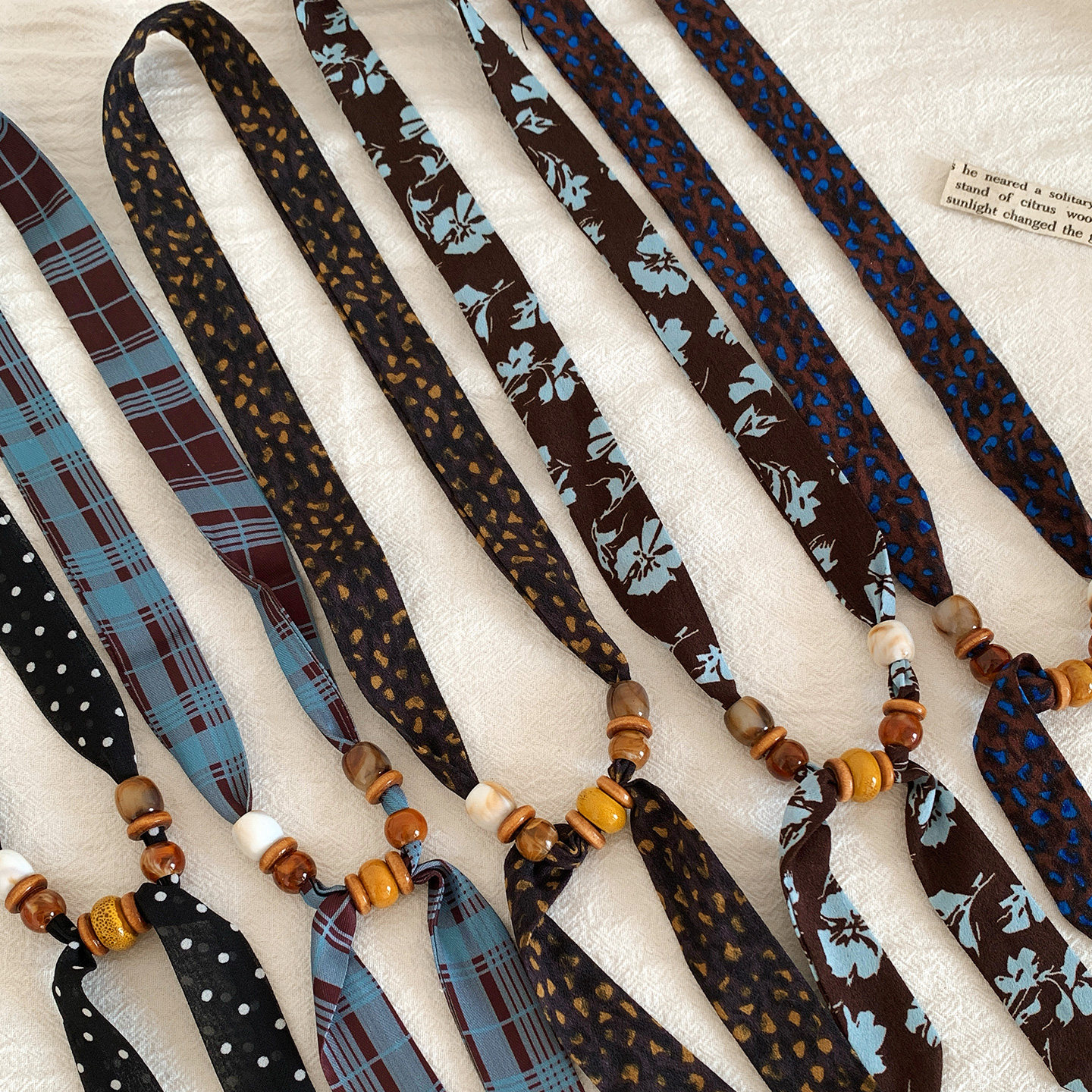 韩系黑色波点串珠抽拉系脖丝巾项链女高级感复古毛衣链百搭配饰