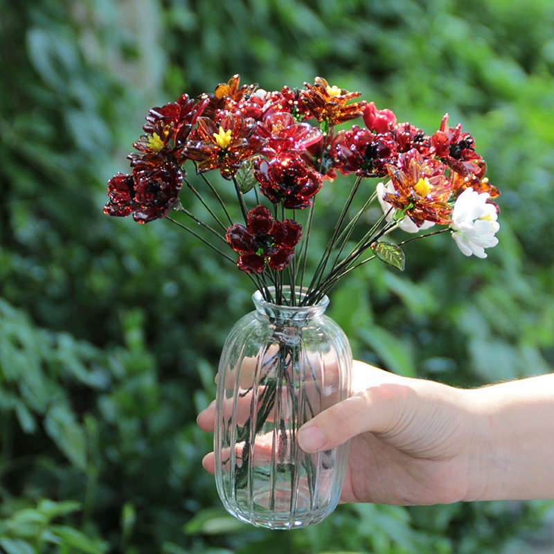 淄博琉璃手工仿真花玻璃家居桌面装饰花瓶插花水晶永生花摆件礼物