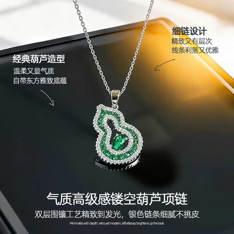 复古轻奢绿色葫芦项链女高级感小众新款锁骨链精致礼服宫廷风配饰
