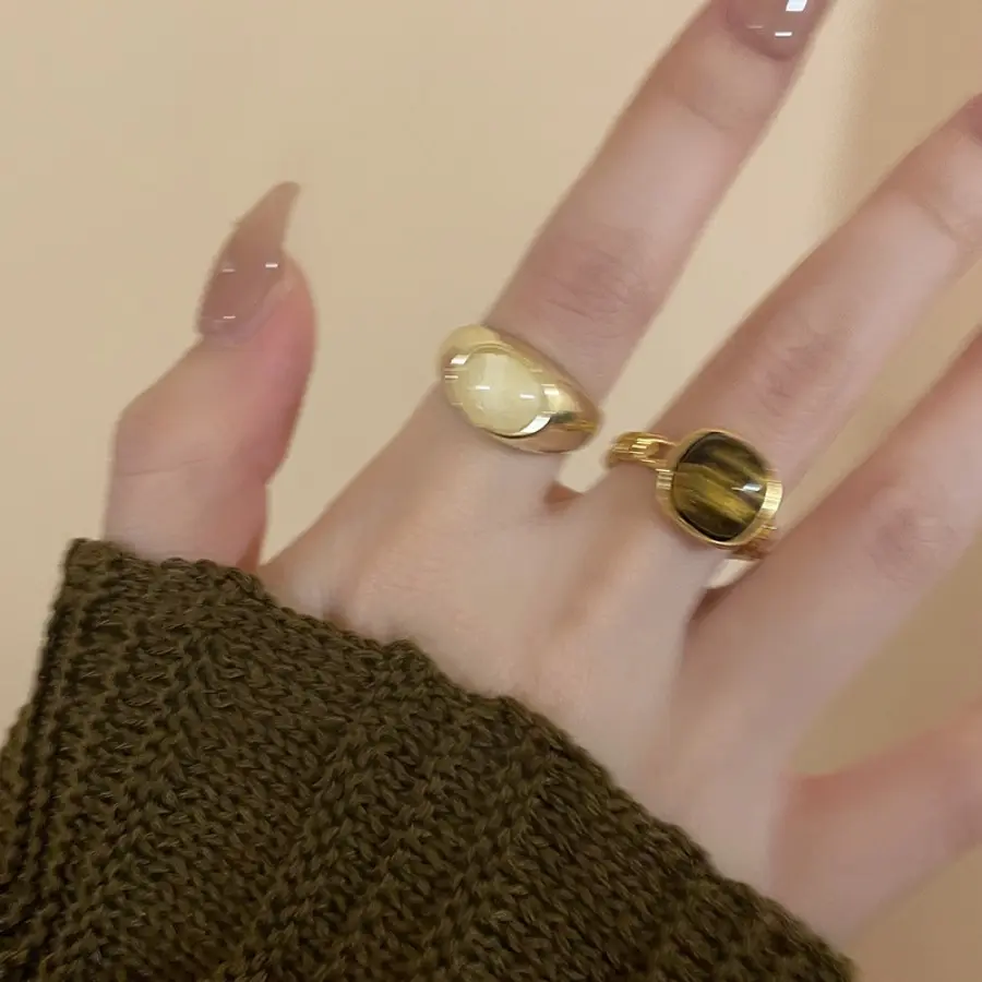 复古虎眼石开口戒指小众设计感食指戒轻奢精致气质指环高级感戒指