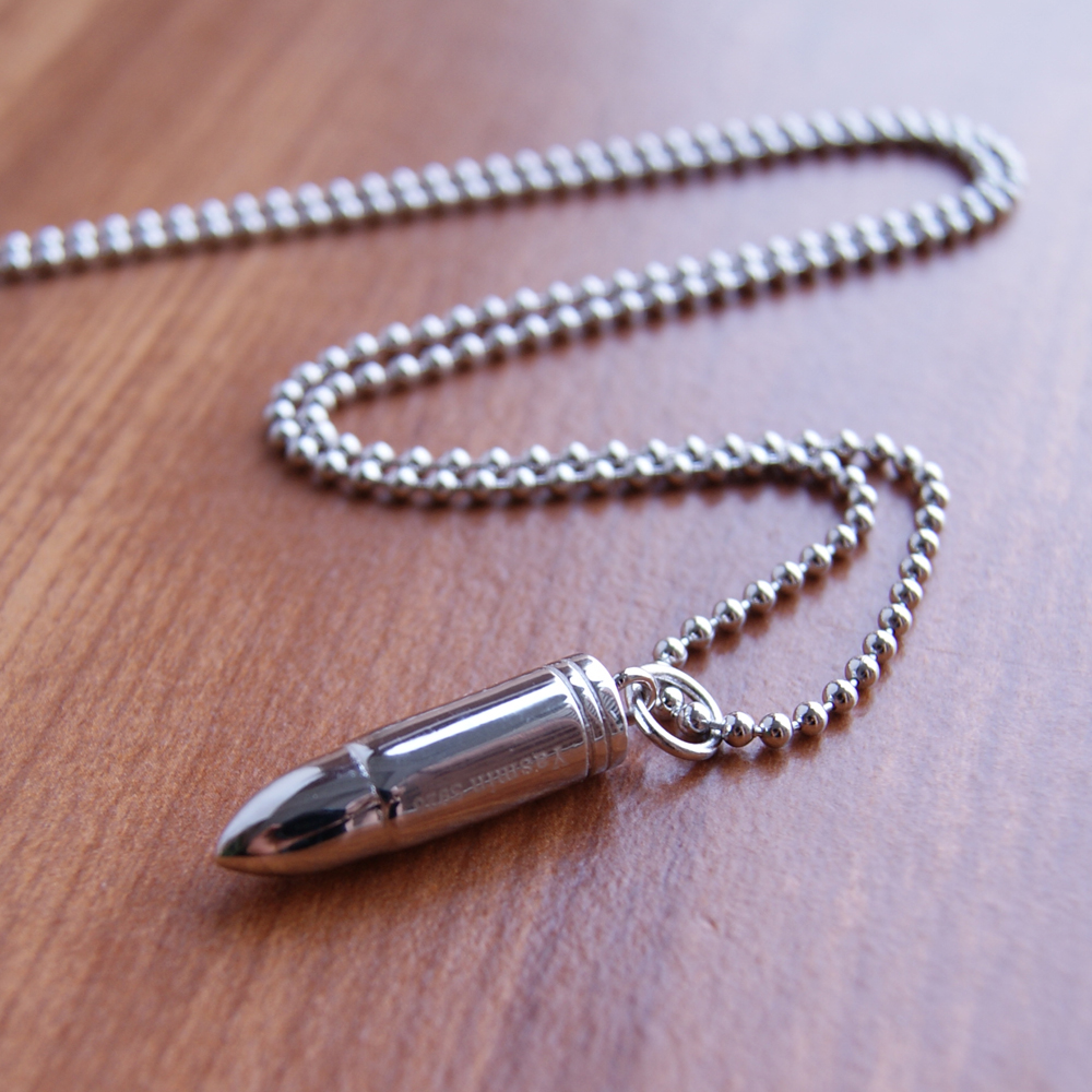 925纯银项链男储物空心子弹头吊坠骨灰个性复古霸气网红挂饰潮酷