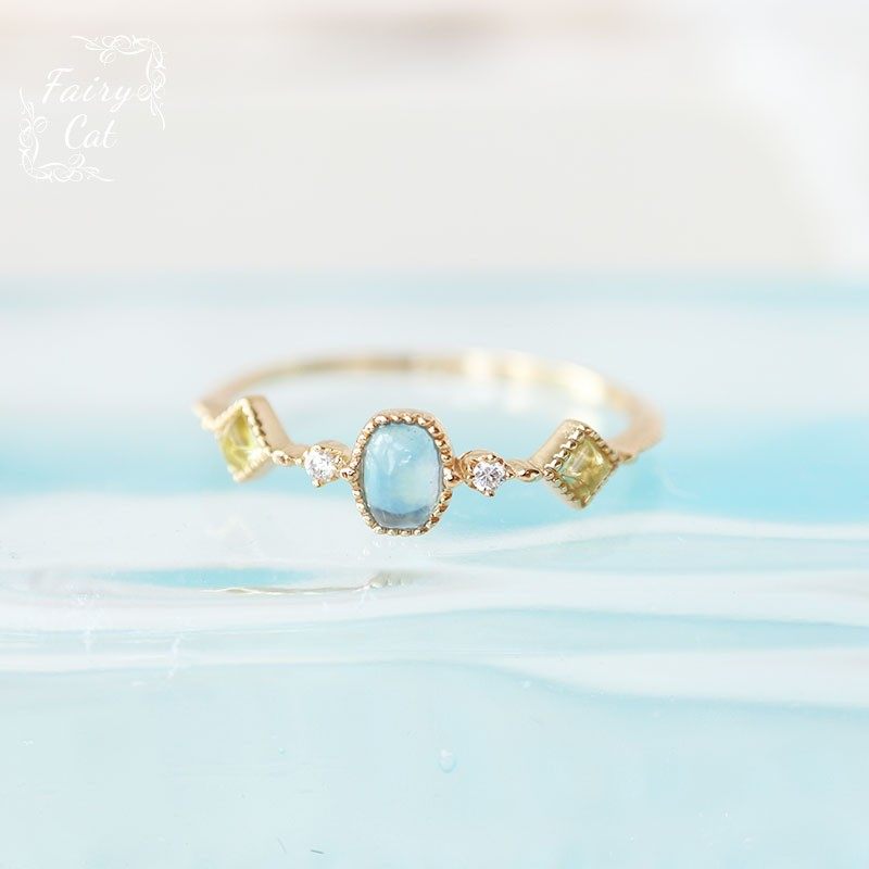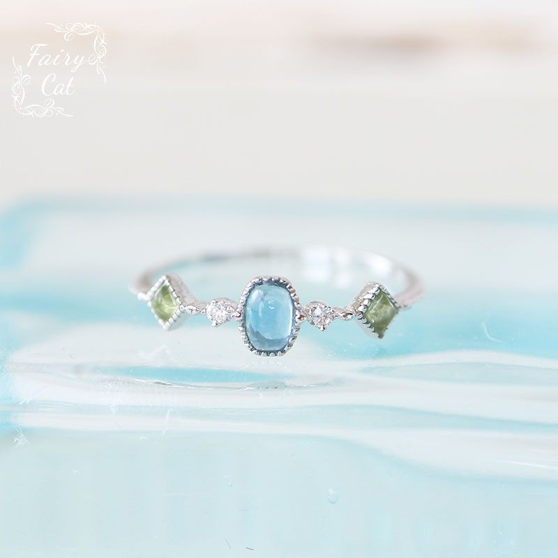 特 罗马玻璃系列海蓝宝橄榄石戒指925银镀金小清新日系A家同款女