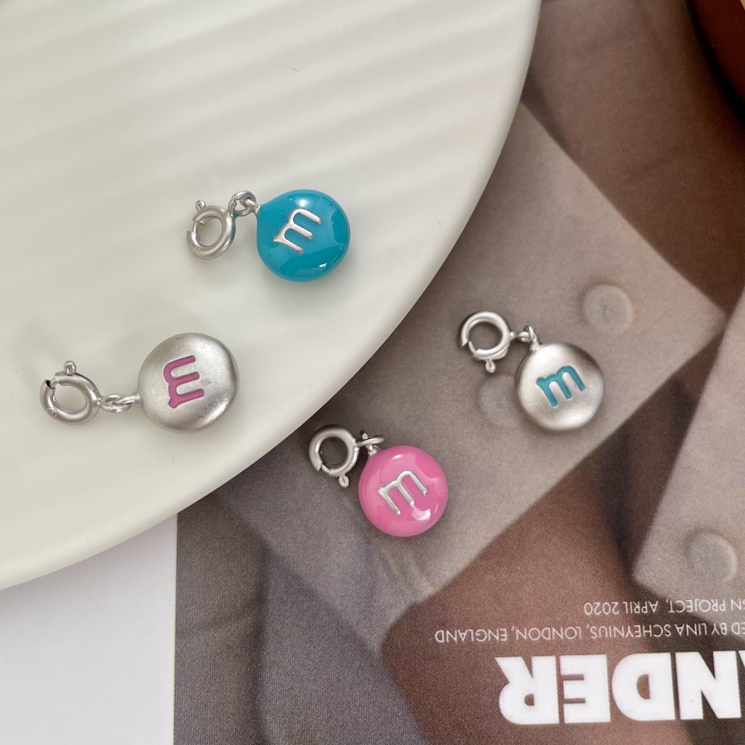 s925纯银彩色m豆diy小吊坠女小清新风格韩版潮项链夏日彩色锁骨链