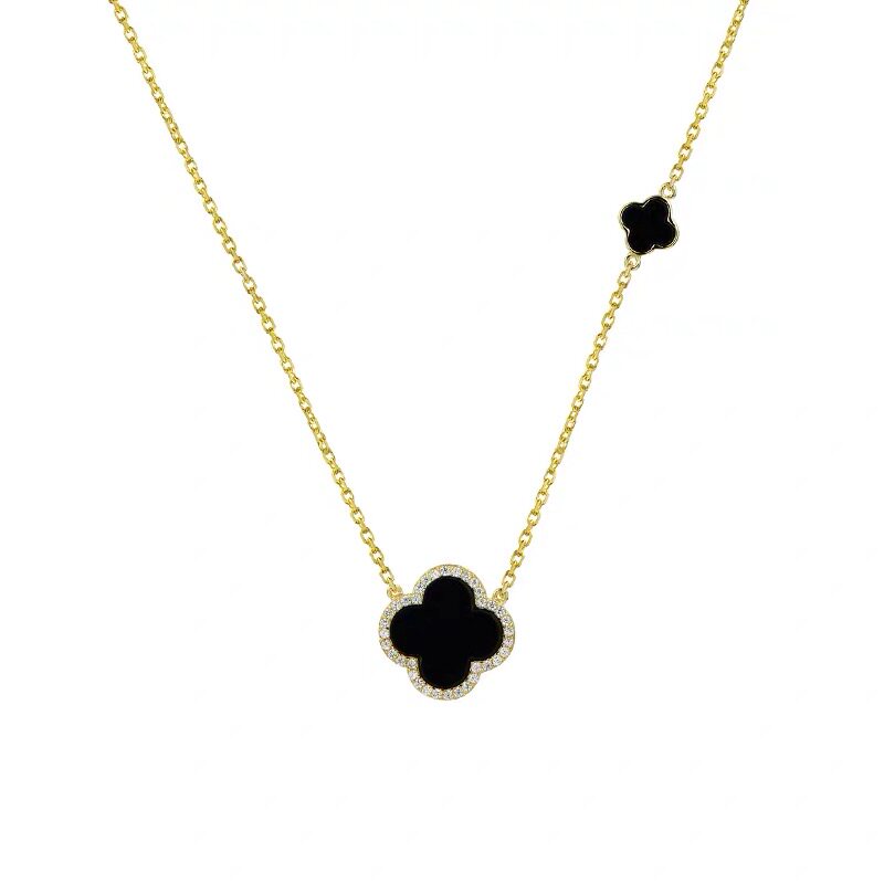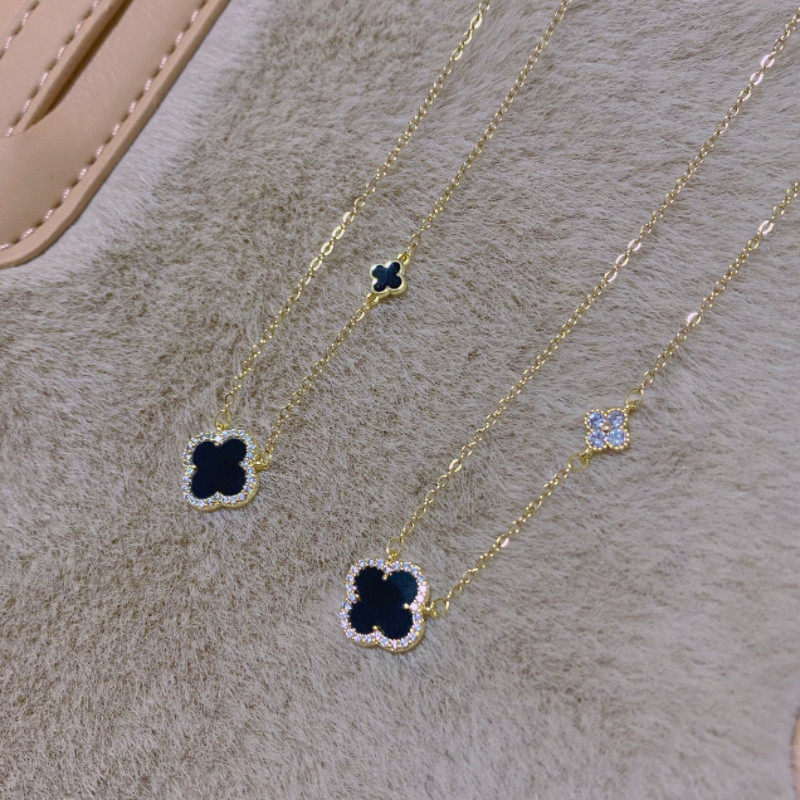 黑色幸运四叶草项链网红锁骨链气质简约ins小众设计颈链2021新款