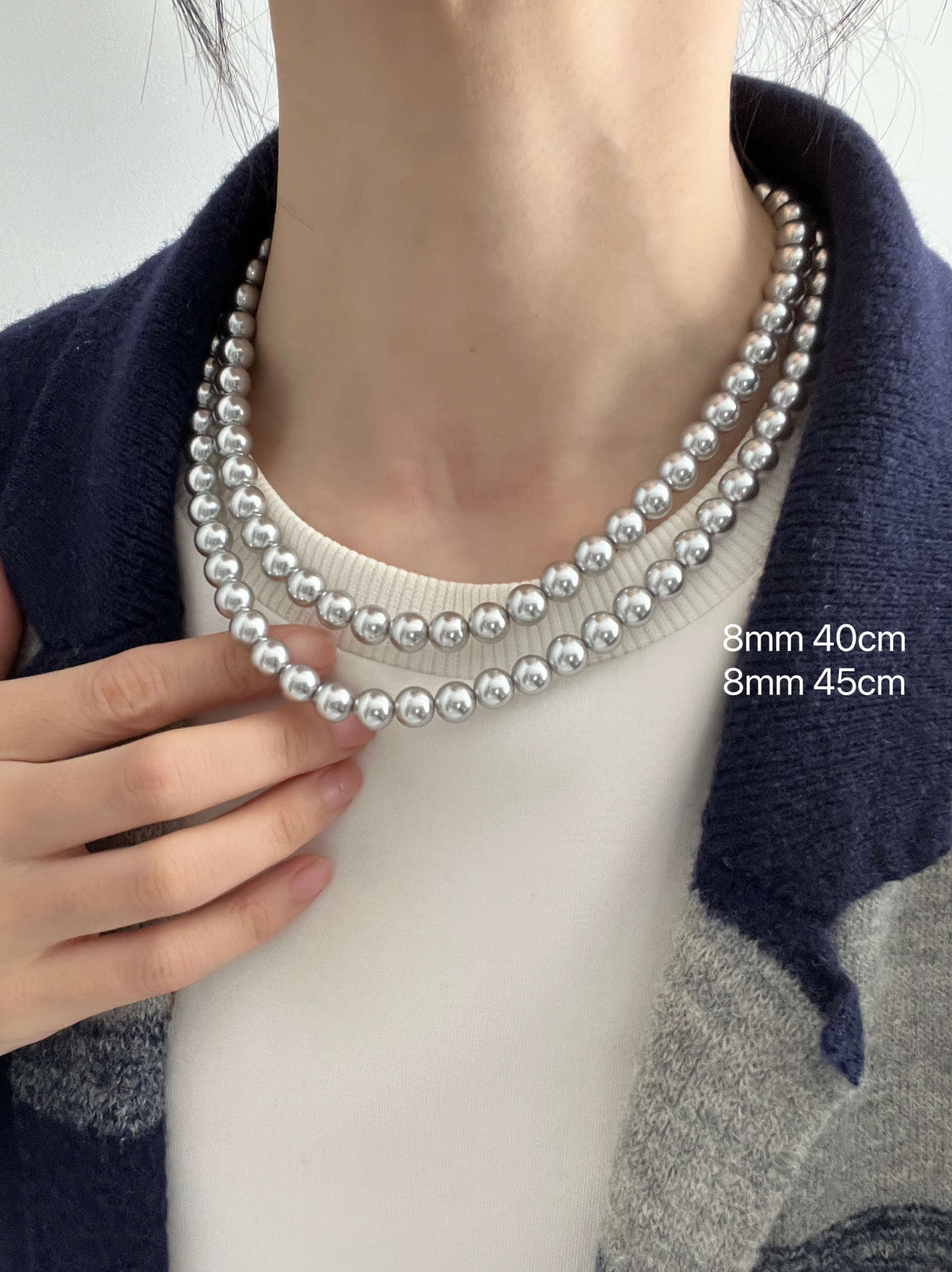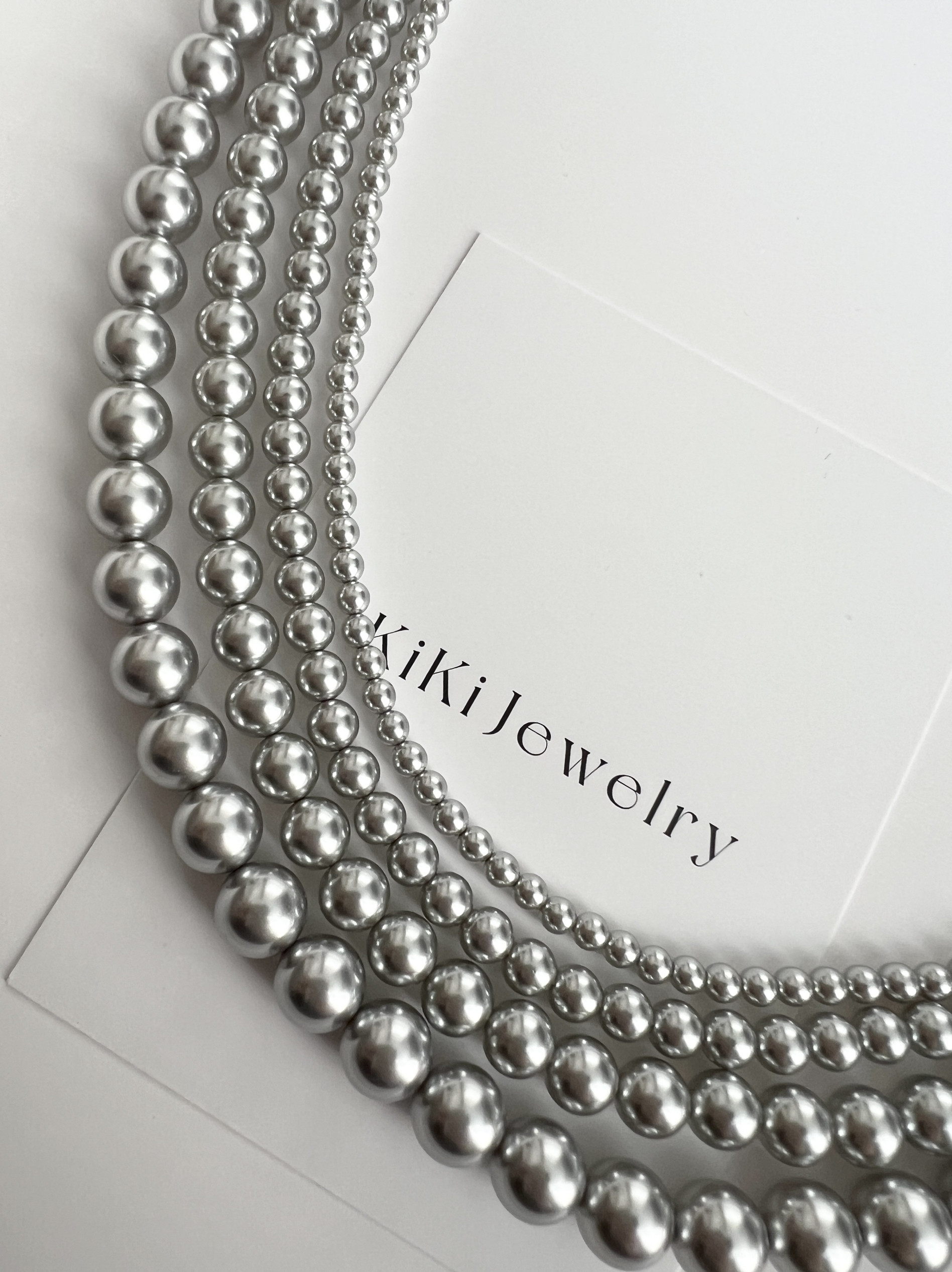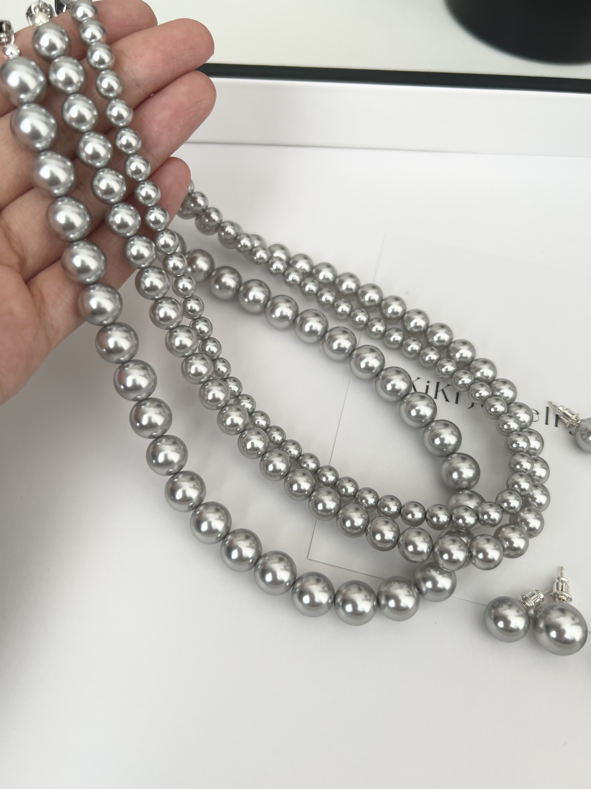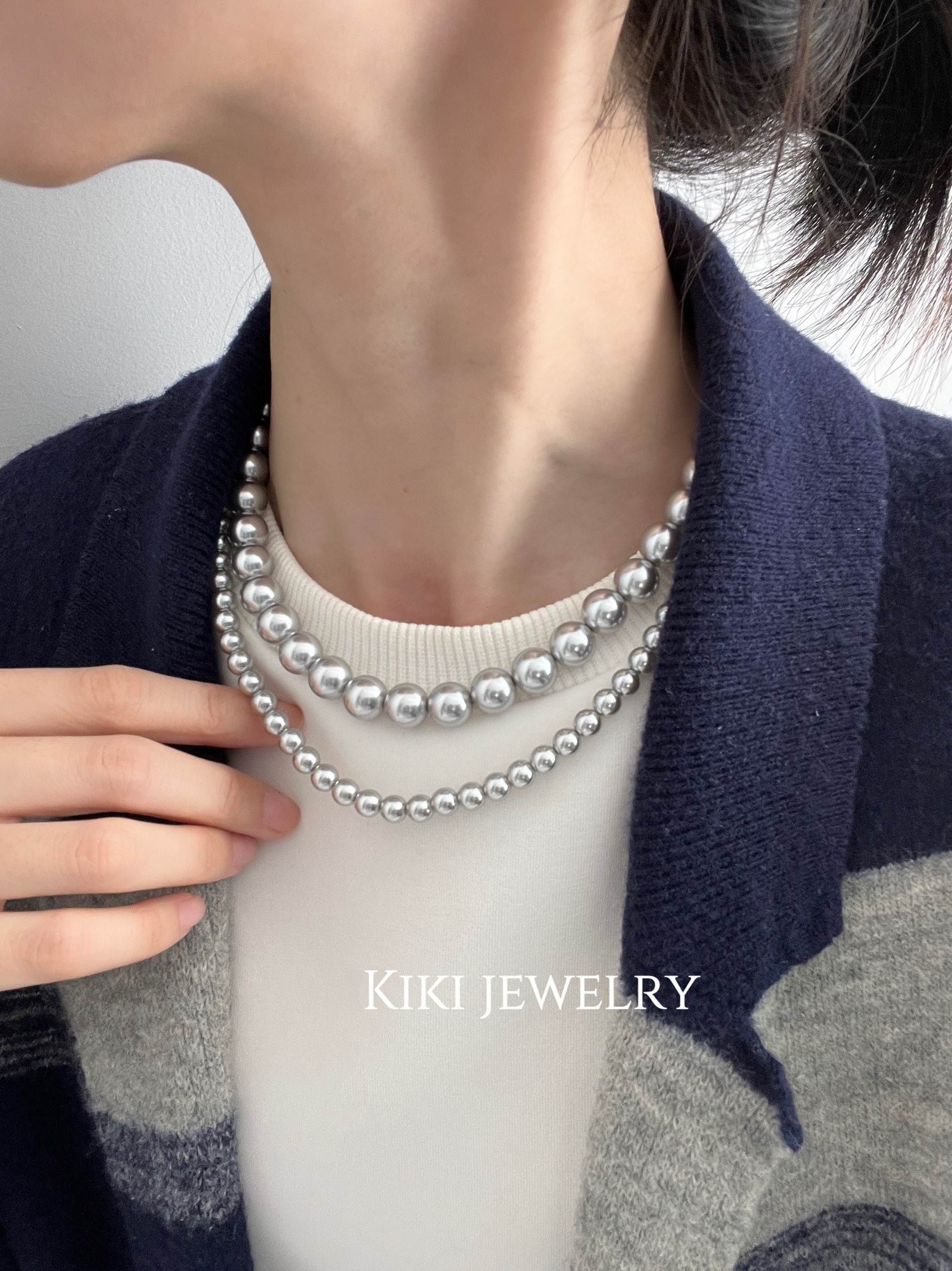 Kiki.进口人造真多麻珍珠项链施家铂金灰锁骨链银灰色珍珠