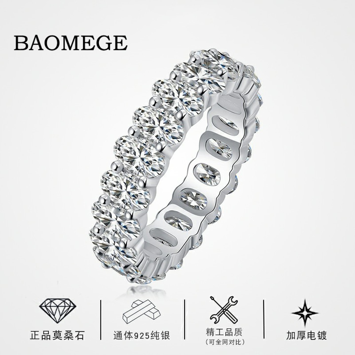 BAOGEME莫桑石椭圆3×5mm排戒S925纯银奢华满钻戒指女可叠戴指环