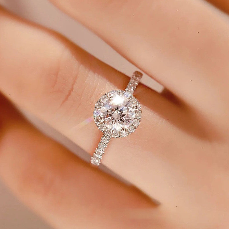 正品莫桑石女50分一克拉D色铂金18K金结婚钻戒指仿真深圳水贝定制