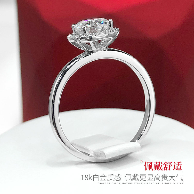 18K金莫桑石戒指公主方形钻戒女925银镶嵌1克拉50分仿钻石订婚戒